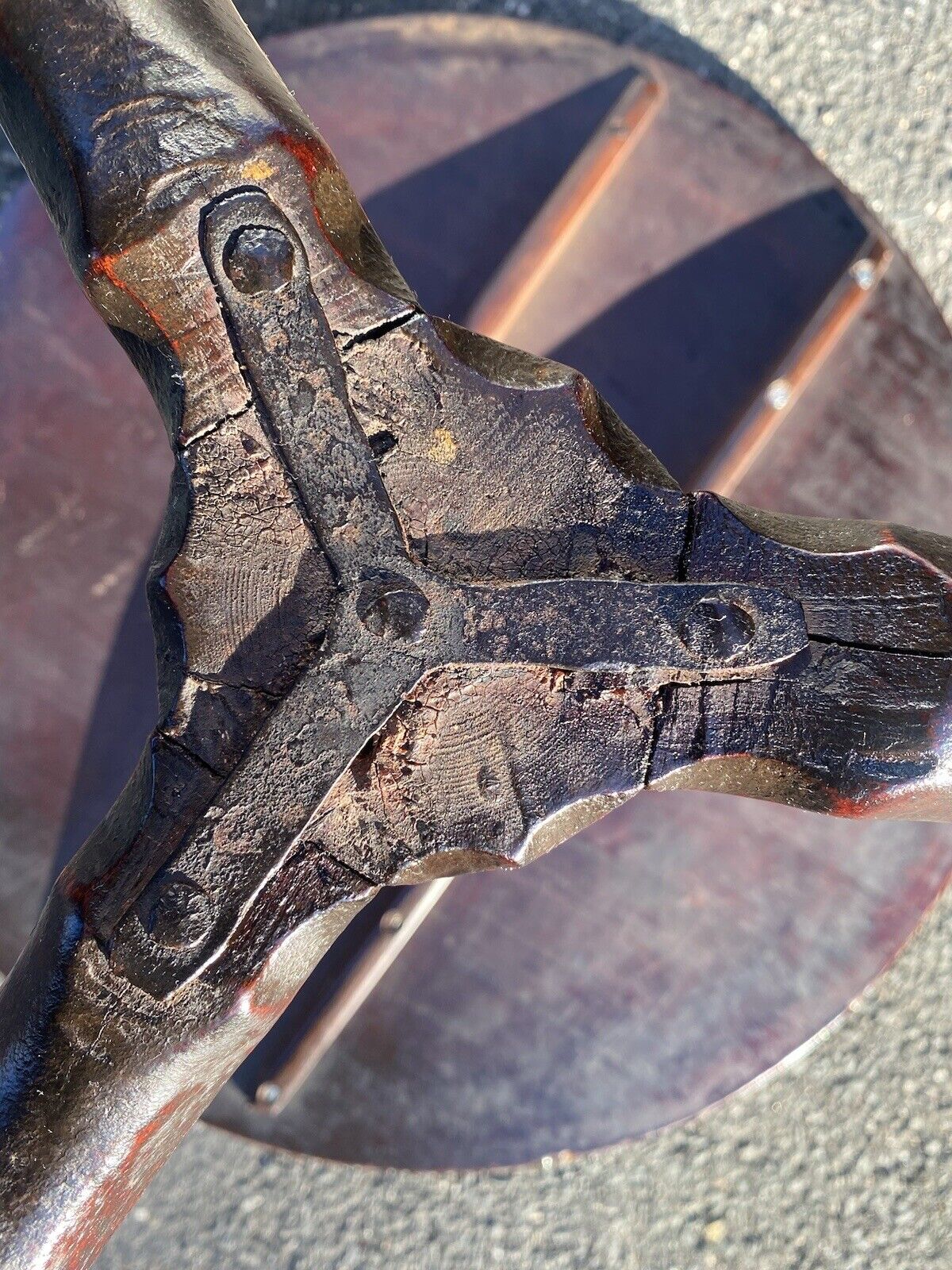 Bay Colony Antiques is pleased to offer for sale this fantastic 18th century antique Queen Anne Southern Walnut tilt top table. Antique tilt-top tables are a type of furniture that were popular in the 18th and 19th centuries. These tables are designed with a single central pedestal and a circular or oval top that can be tilted and locked in place for storage or transportation. The tilt-top design was a practical solution to the problem of limited space in small rooms, as the table could be easily stored in a corner when not in use. These tables were versatile and could be used for a variety of purposes, such as serving tea, folding laundry, gaming, or as a writing surface. The table has a beautiful Walnut top and a finely formed column. The snake legs are well proportioned and are dovetailed into the column and further strengthened by an iron spider. When the top is flipped up the table measures 25” wide x 20” deep x 44” tall. When the top is locked down like in our gallery image the table has a 30 1/4” diameter and stands 27 3/4” tall.
