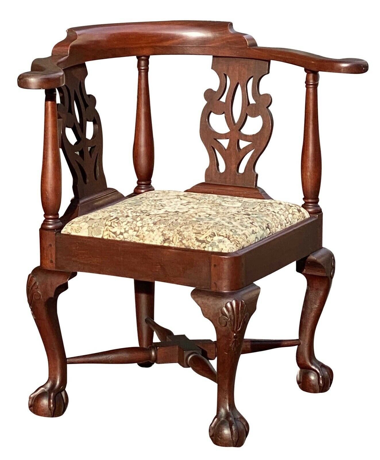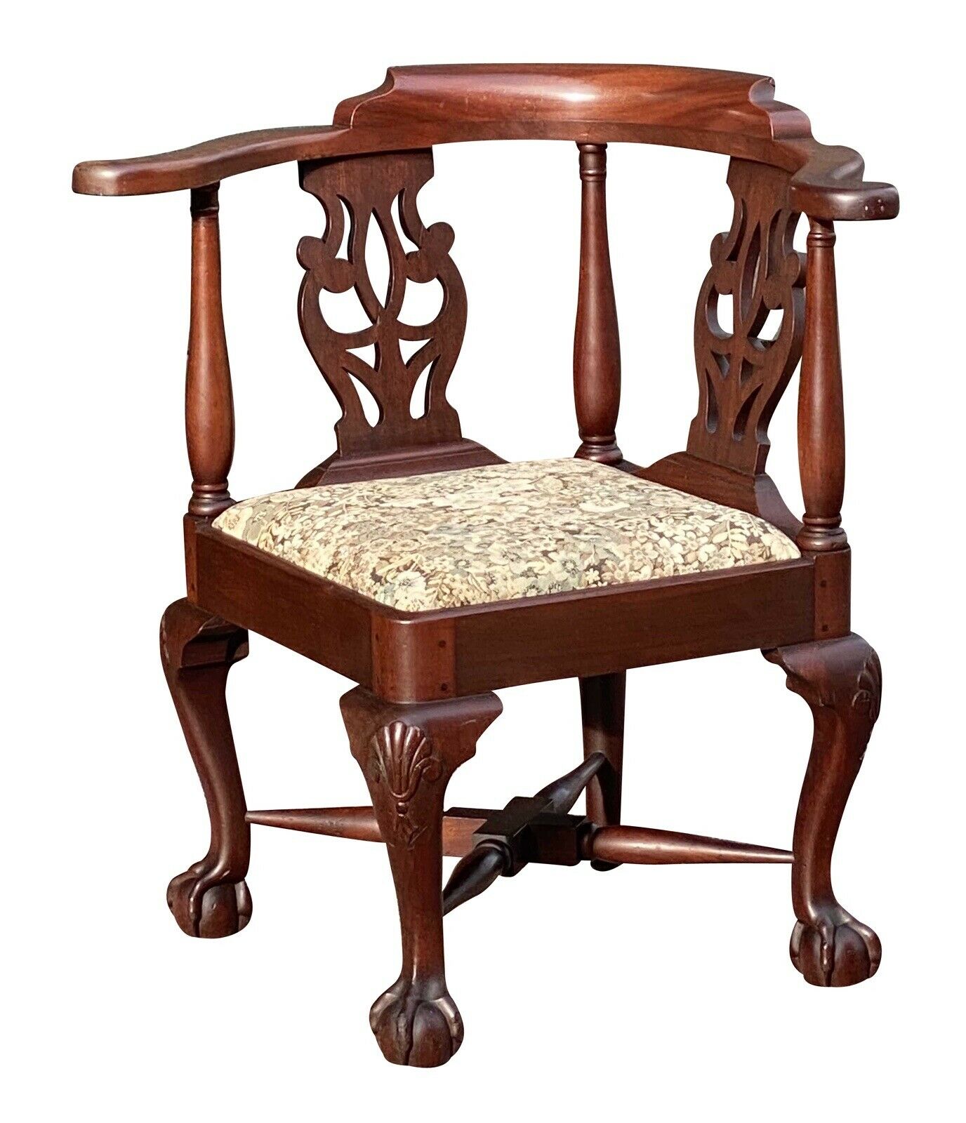 19th C Antique Chippendale Mahogany Roundabout / Corner Chair ~ Ball & Claw Feet