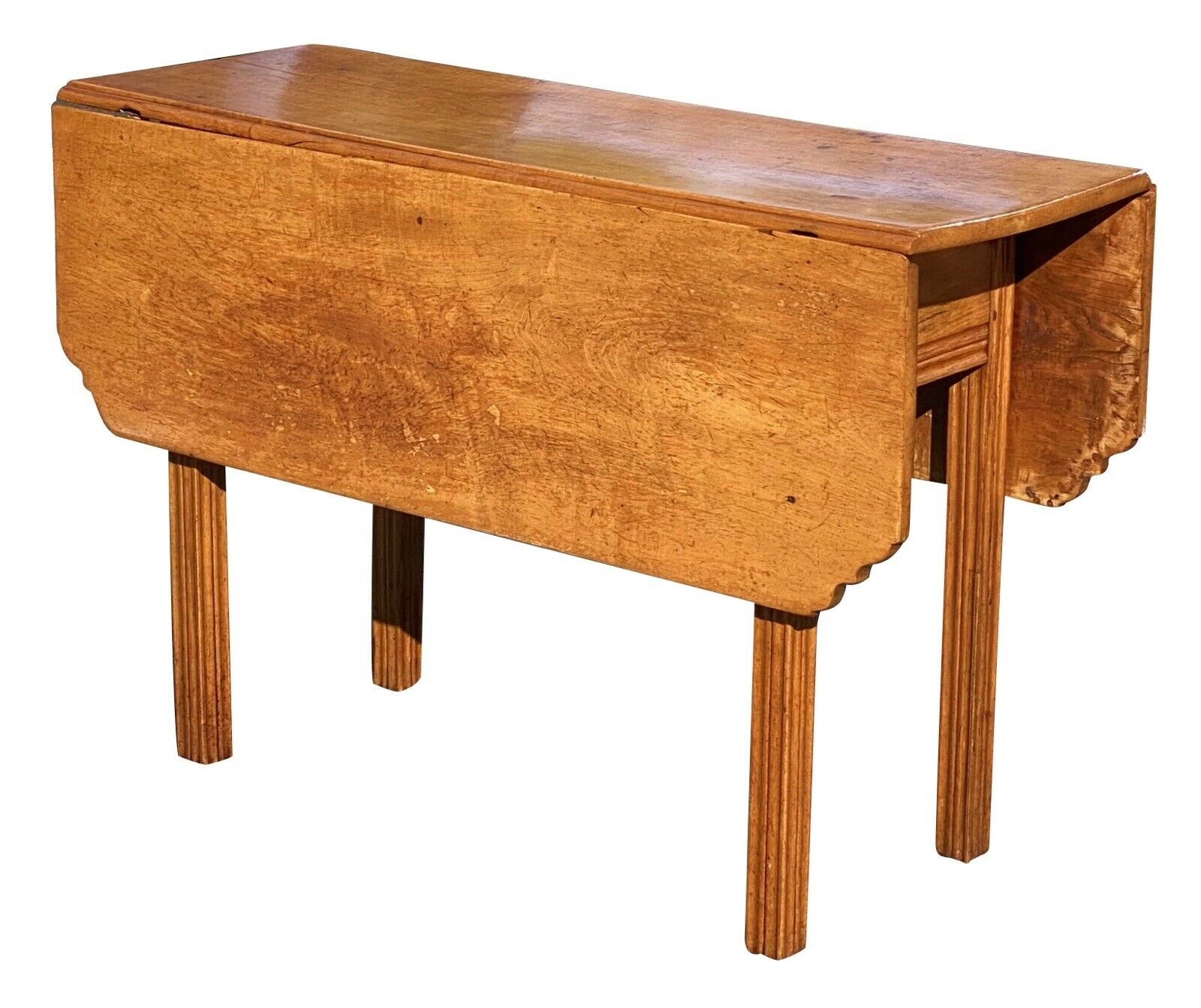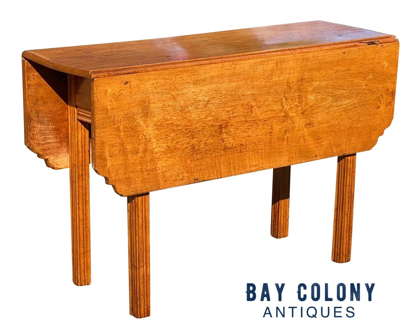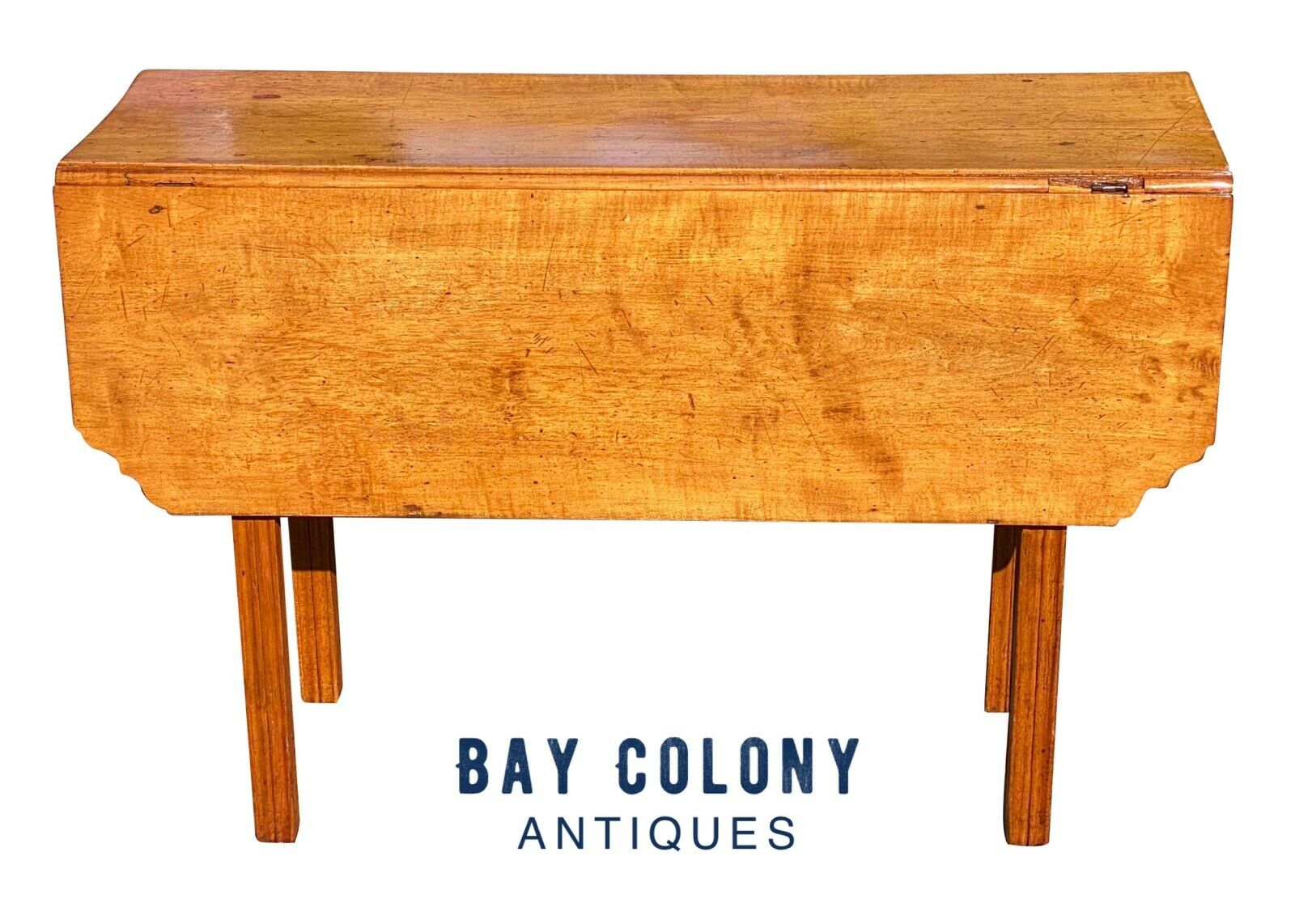 18th C Antique New England Chippendale Tiger Maple Drop Leaf Dining Table