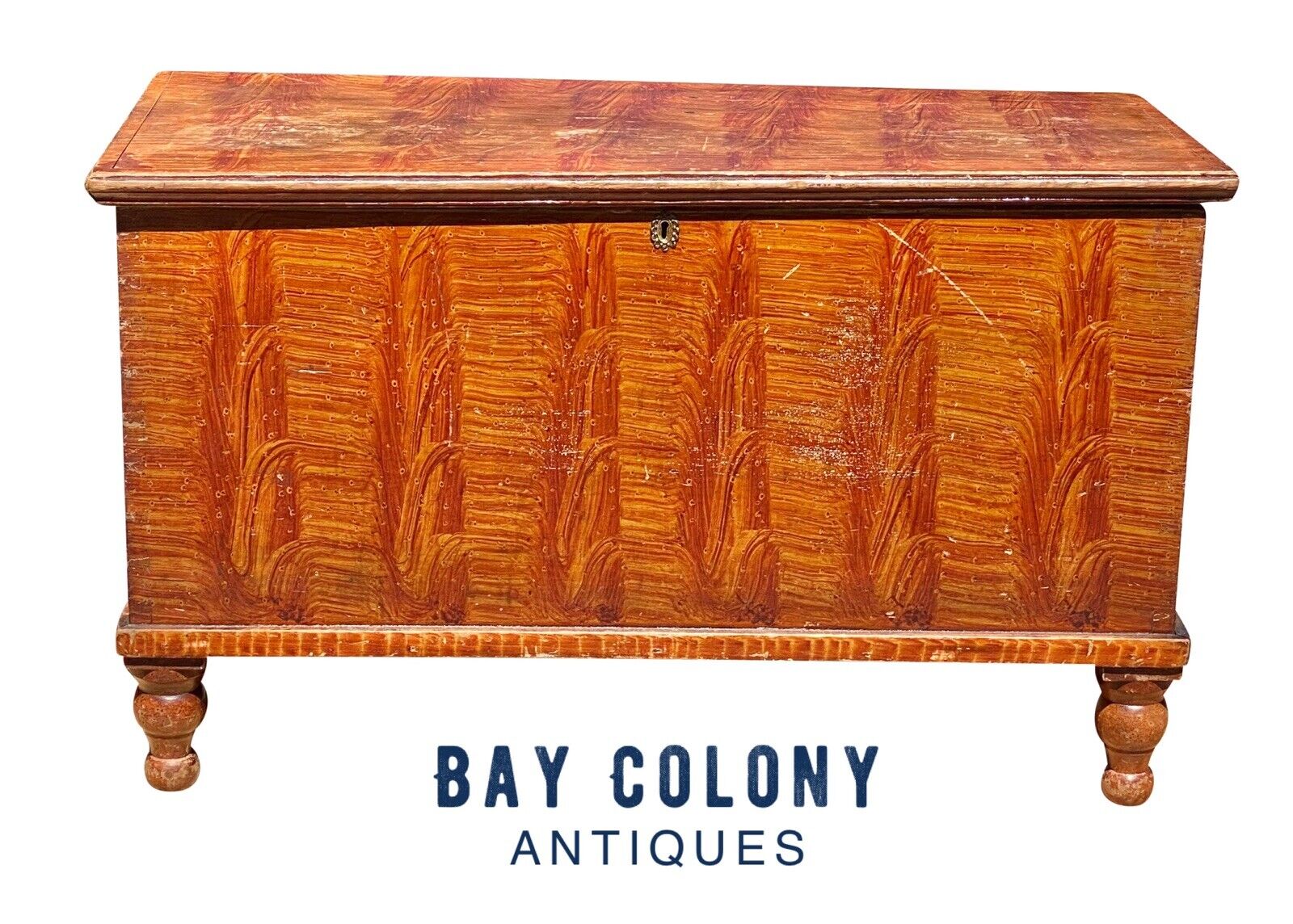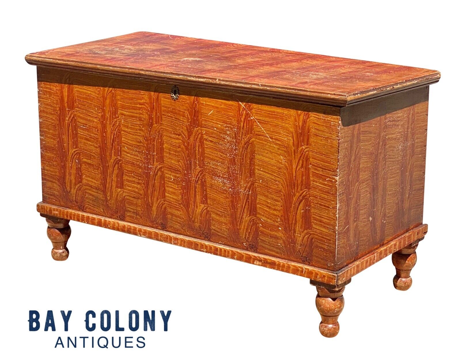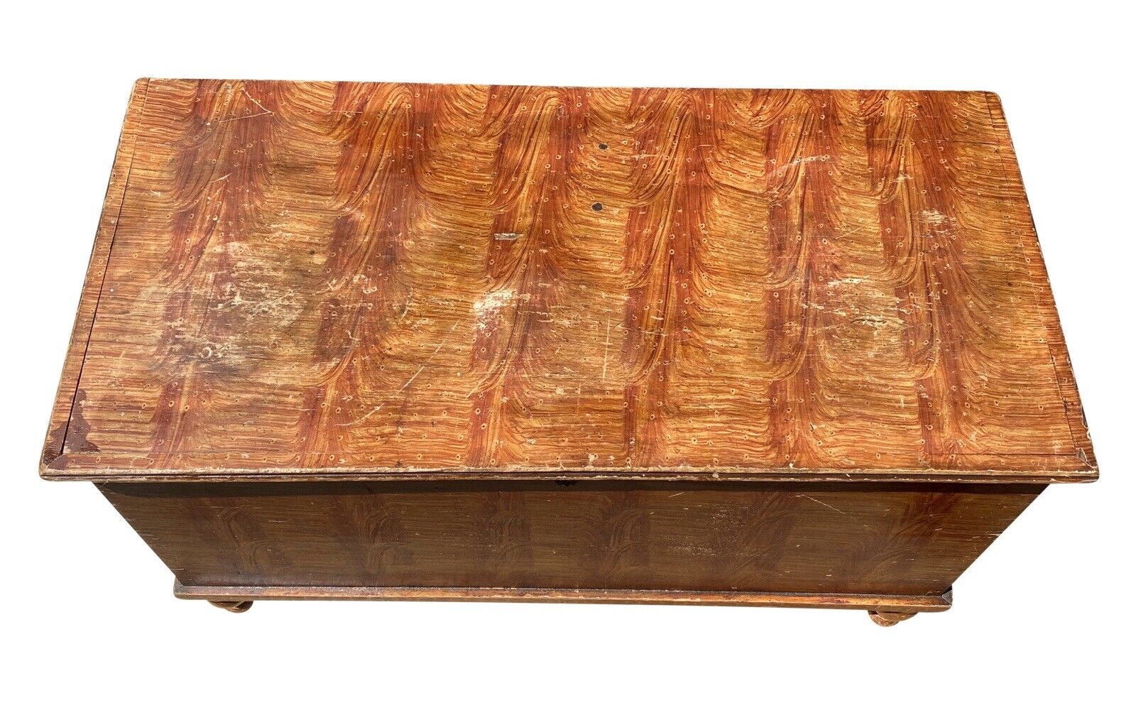 19th C Antique Pennsylvania Federal Period Grain Painted Blanket Chest
