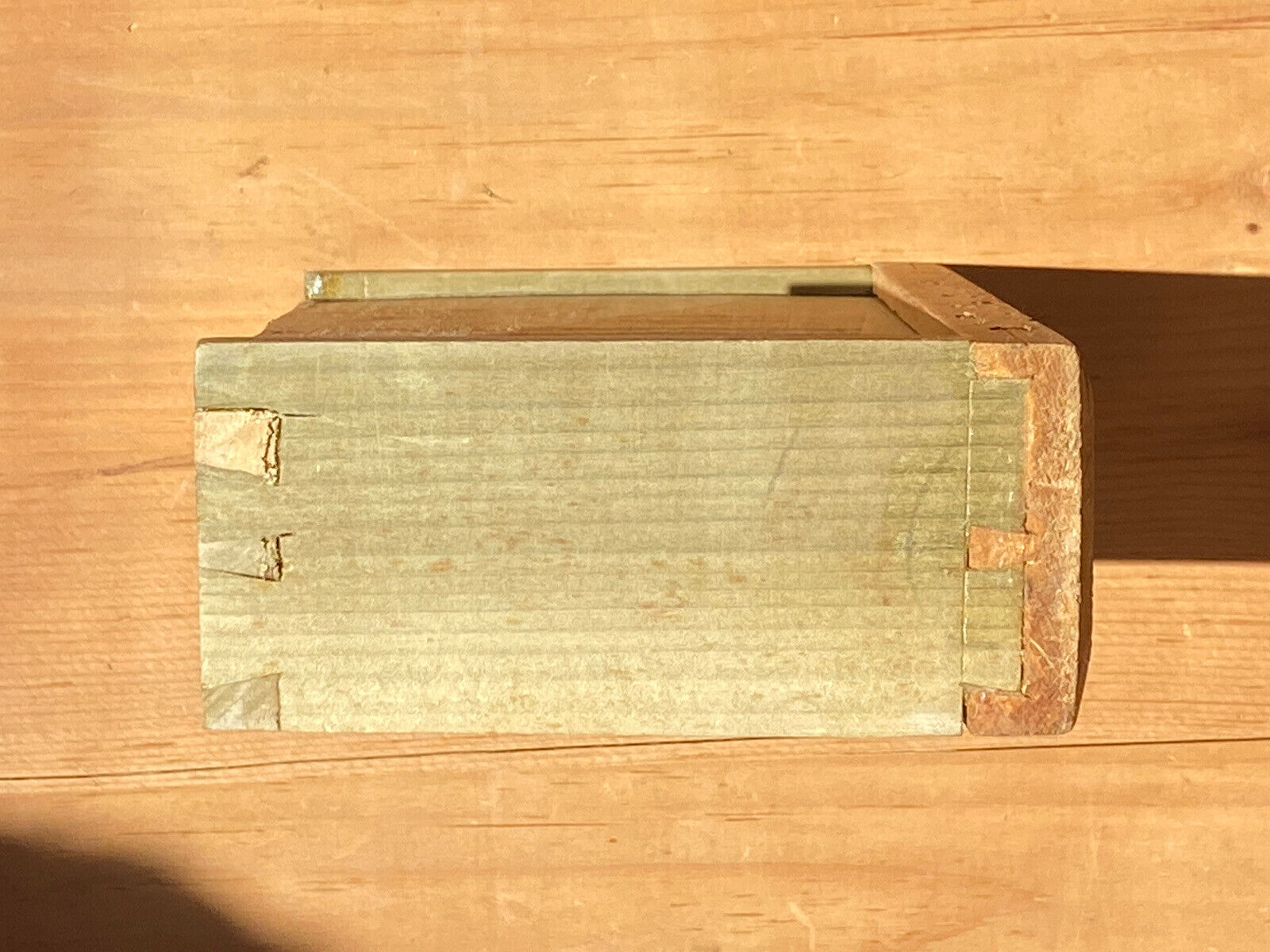 With our utmost enjoyment, Bay Colony Antiques is extremely proud to offer for sale this fantastic early 19th century antique Federal period grain painted blanket chest. The best grain painted furniture was made in rural communities where the residents had a taste and knowledge about high end furnishings, but limited means to afford or access it. This chest has an exceptional painted surface meant to imitate a book matched flame Mahogany. The painted surface in consistent on the front, sides, top, base molding, and even the feet. Each board is joined with dovetails and the joinery can be best seen on the back. The chest has a spacious interior with a lift top candle till and two drawers underneath the till. The two interior drawers are both fitted with steel locks and brass escutcheons, but this didn’t come to us with a key. We originally thought this was a New England box, but the drawers have Poplar secondaries leading us to believe this was probably made in Pennsylvania. The chest is in fantastic condition with our only notes being minor surface wear and a faint warp to the top. The chest measures 44 1/2” wide x 21 1/2” deep x 26 1/2” tall. When the lid is fully open the height is 46 3/4” tall.
