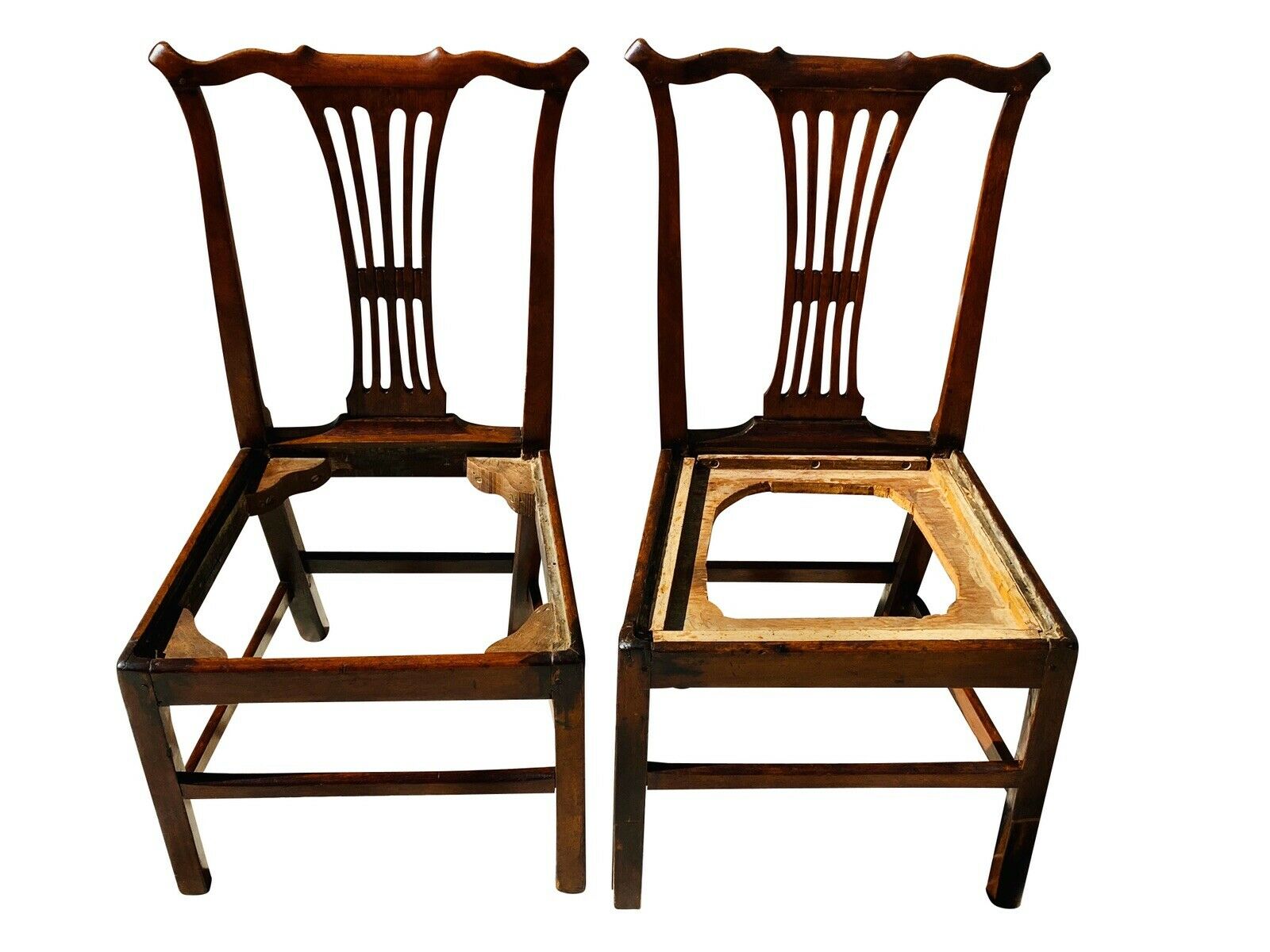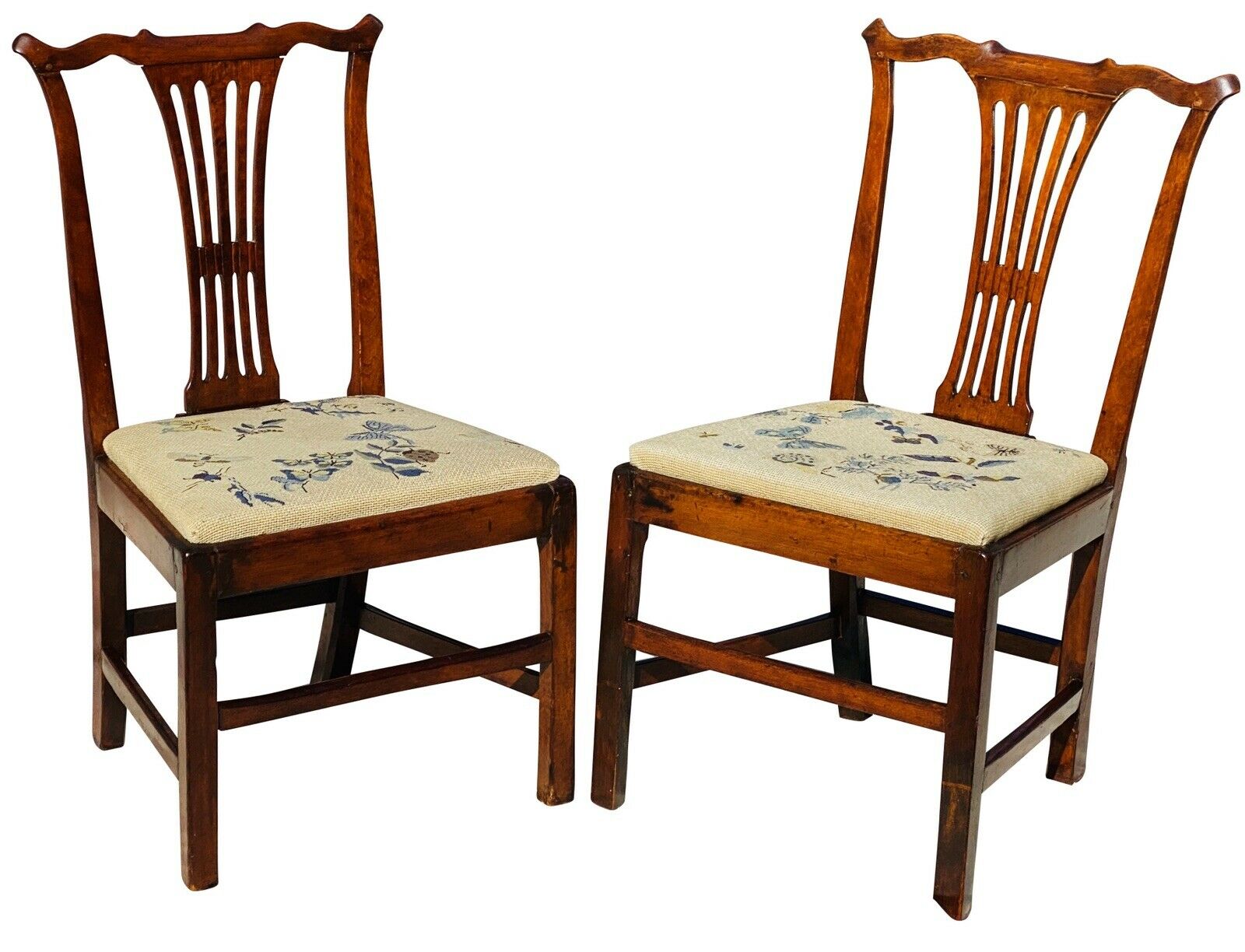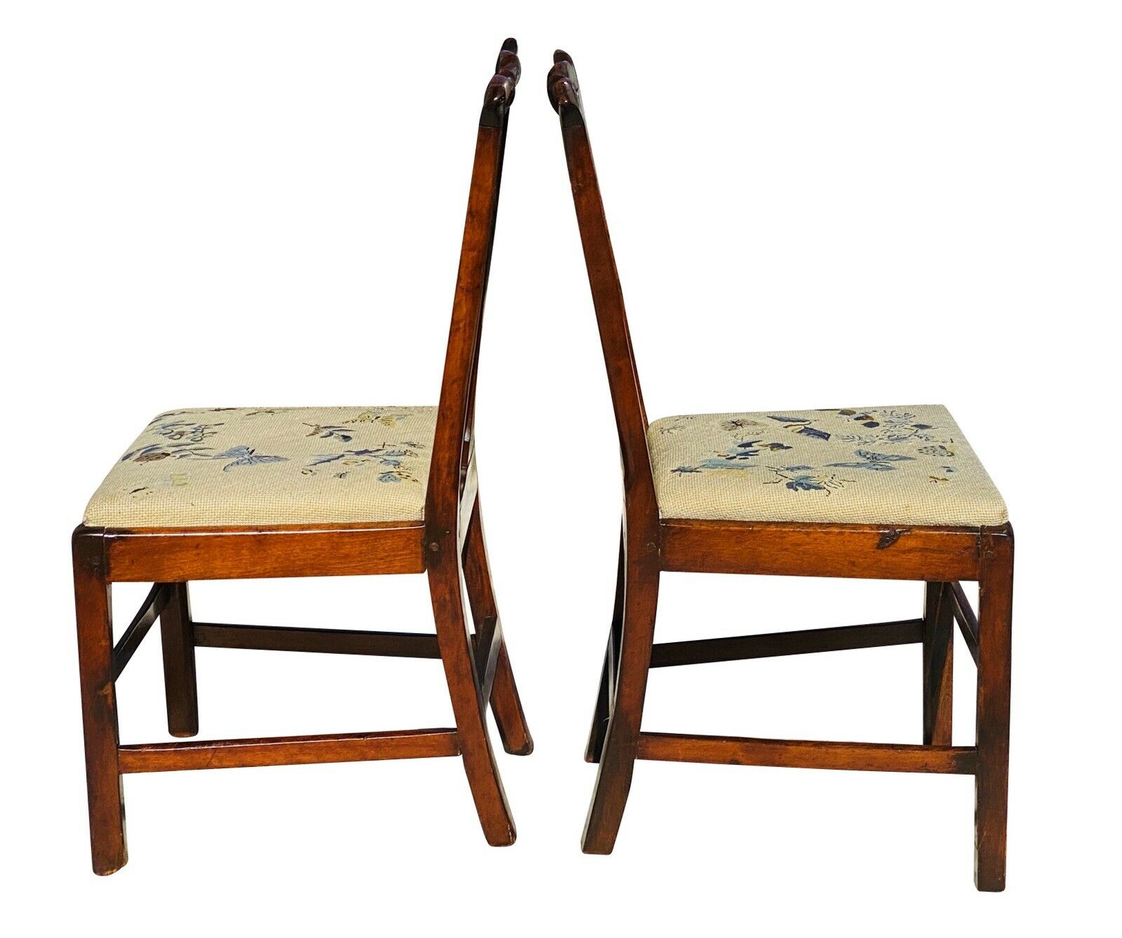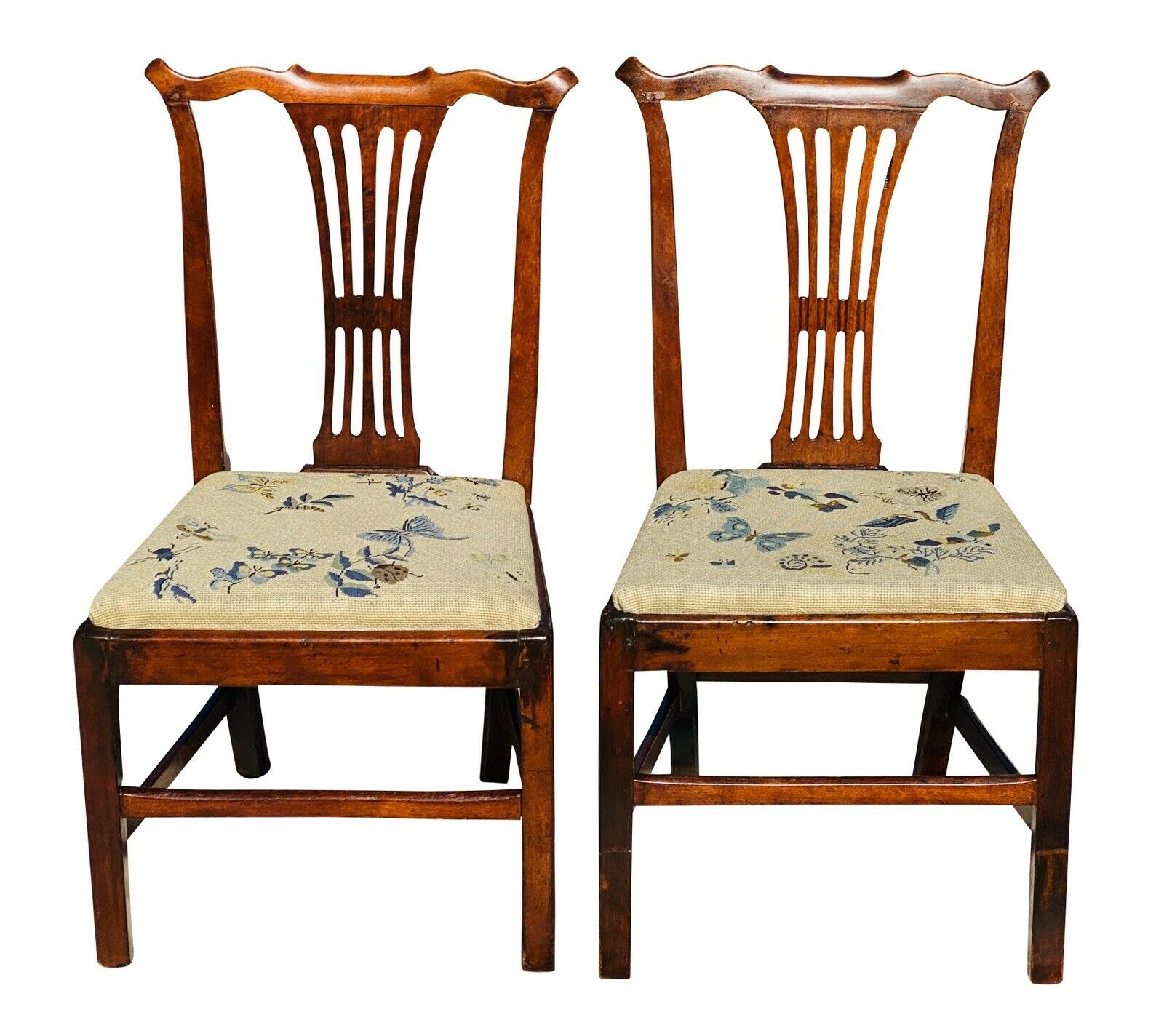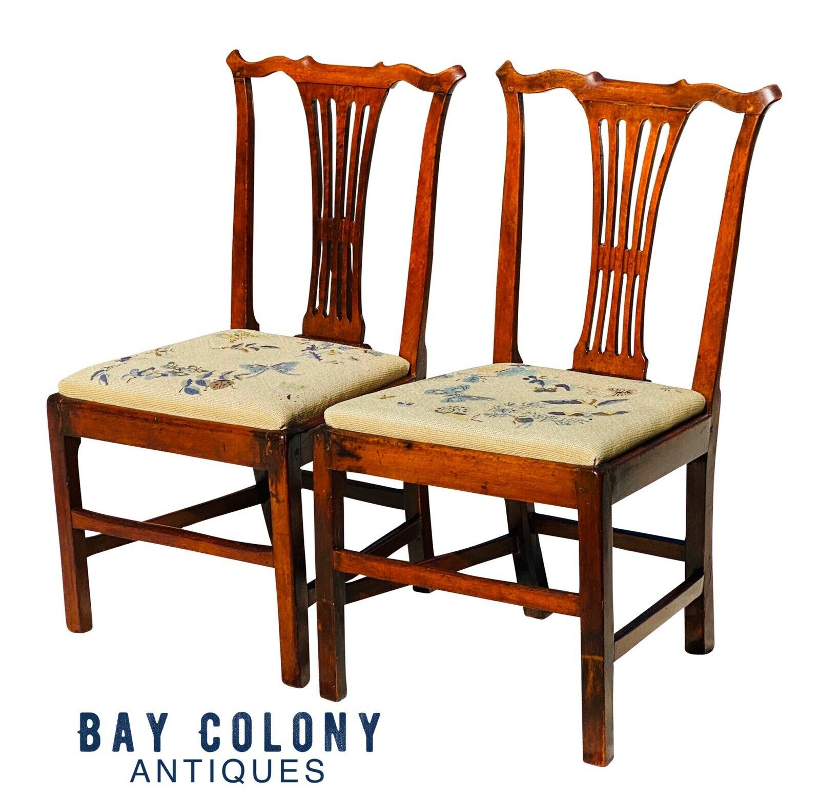 18TH CENTURY CHIPPENDALE ANTIQUE PAIR OF MAHOGANY NEEDLEPOINT SEAT SIDE CHAIRS