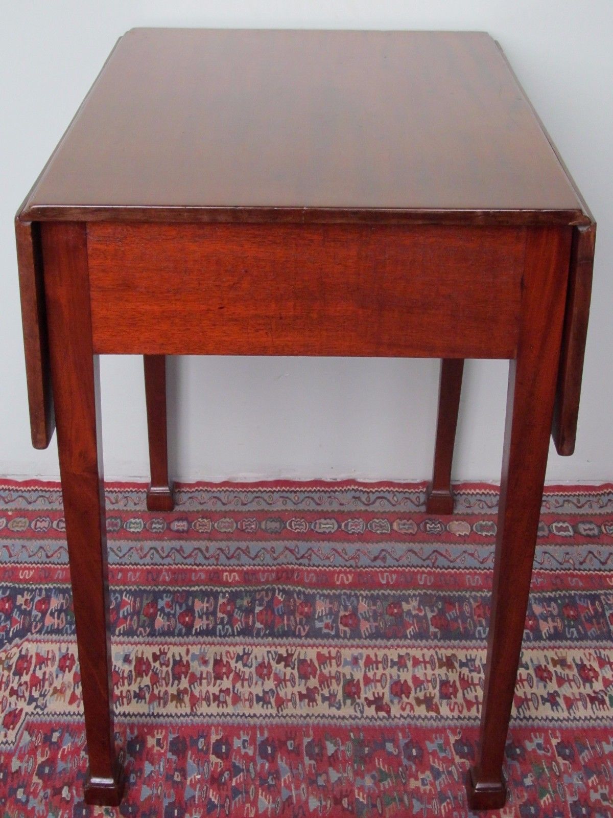 Bay Colony Antiques takes the utmost pleasure and pride in offering you this fine 18th Century U.S. Southern Colonies Chippendale mahogany Pembroke Table. These specimens were crafted throughout the coastal Virginia region and in Charleston, SC. They differ from the Pennsylvania discipline of Period Chippendale Pembroke tables which were almost always crafted in walnut. This comes to us from a Virginia estate of a collector that collected the very finest in American 18th century period pieces. This is the classic Gothic Chippendale form with rare still in tact original blocked collared feet on Marlborough legs. This pieces earns particularly high marks for its originality. A past owner had added casters to it, but they were removed to restore it back to its complete originality. Both Wallace Nuttings Furniture Treasury & Israel Sacks guide to American period Furniture each extensively covers this exact form of Pembroke table. The table's frame box is nicely built with pegged joinery and double wooden hinged right and left side leave shuttles. The drawer is very deep almost going the entire width of the table. These were never mounted with brass pulls. It has its original lock and a highly figured mahogany drawer facing. Truly one of the finest 18th century, U.S. Southern Colonies, Chippendale, Pembroke tables anywhere. It measures 19 1/2" long, 28" long, 27 1/4" tall and 36" with its leaves locked up on the double sided shuttles. For the Important American Furniture Collector!