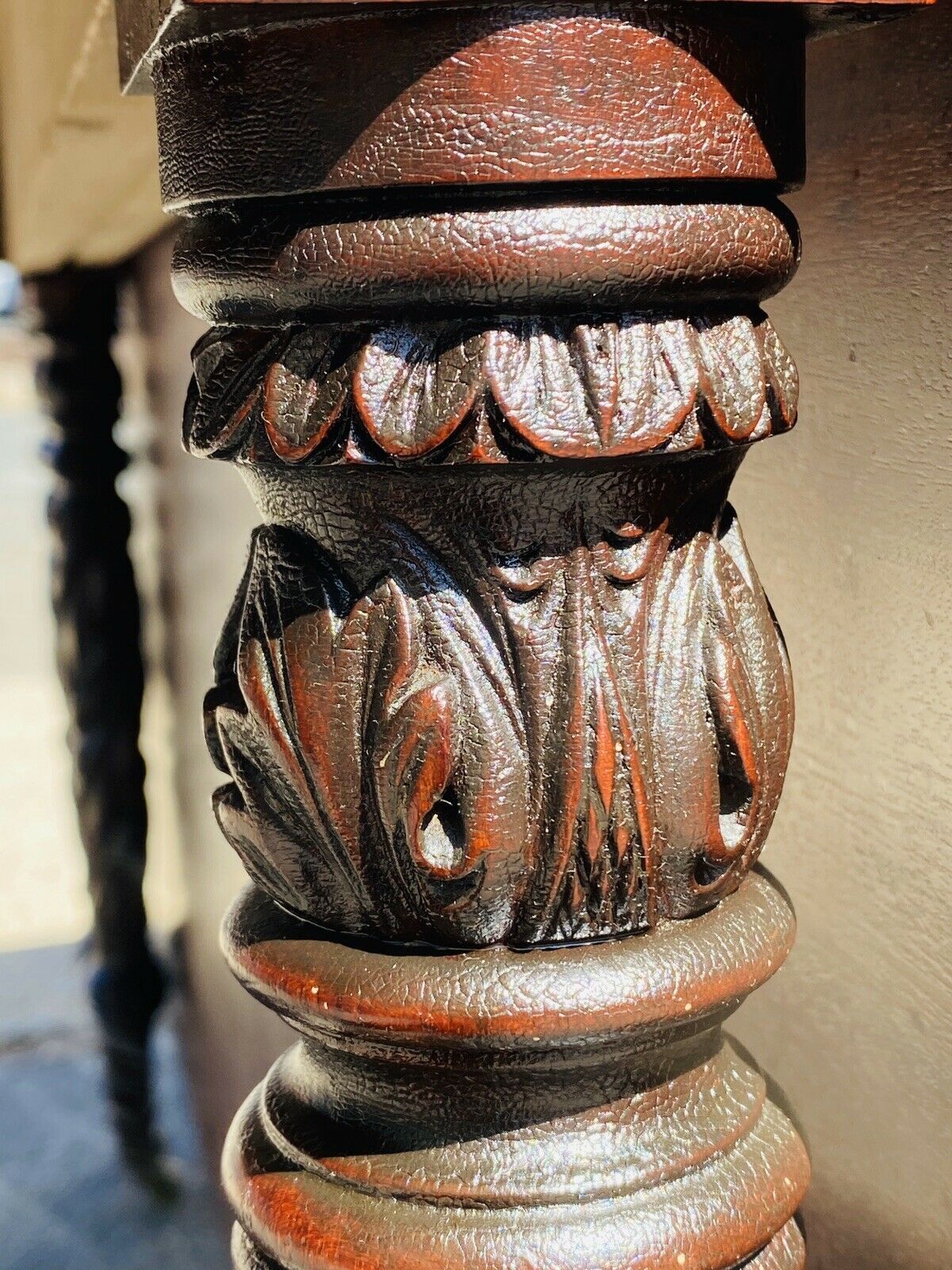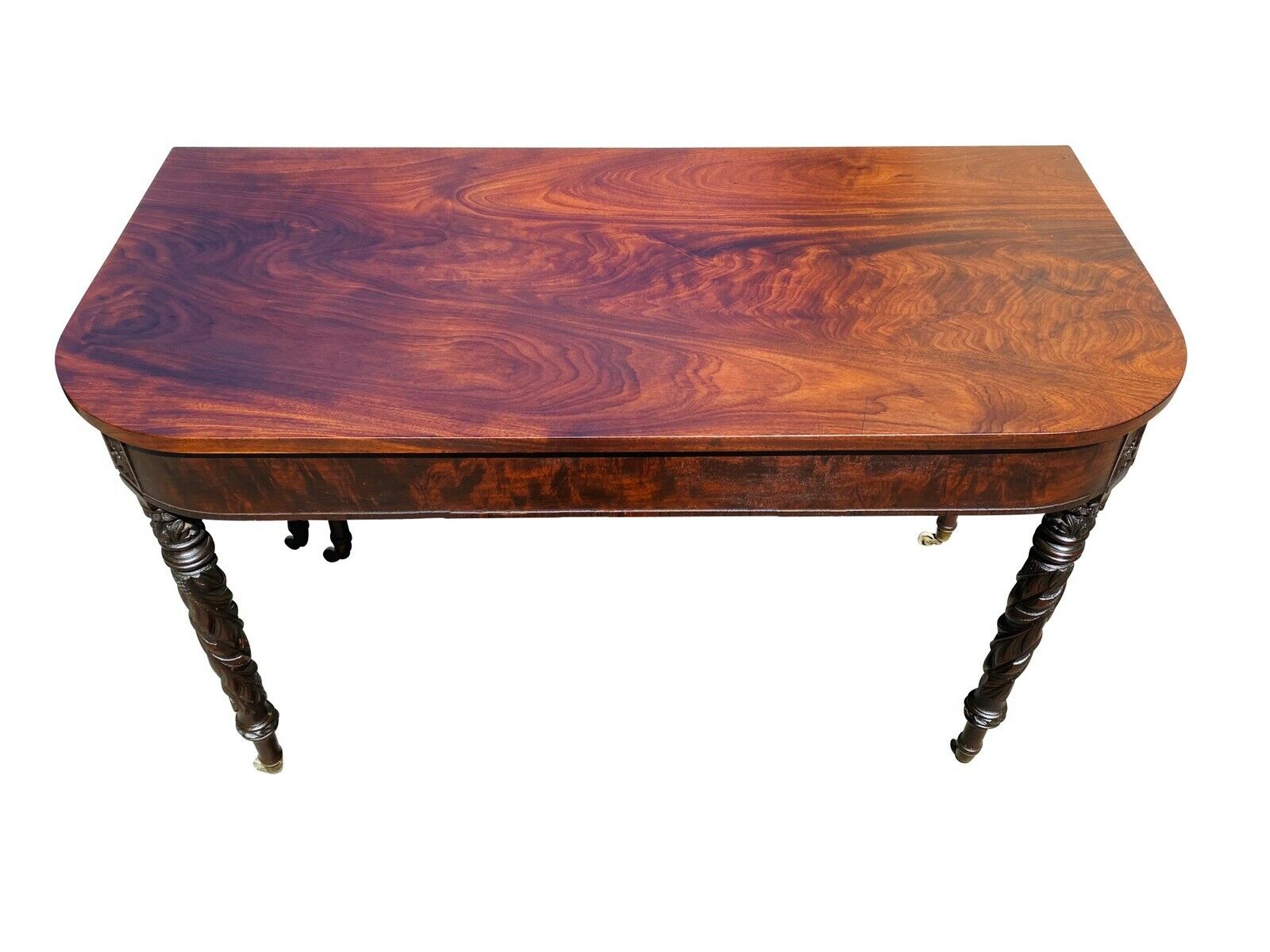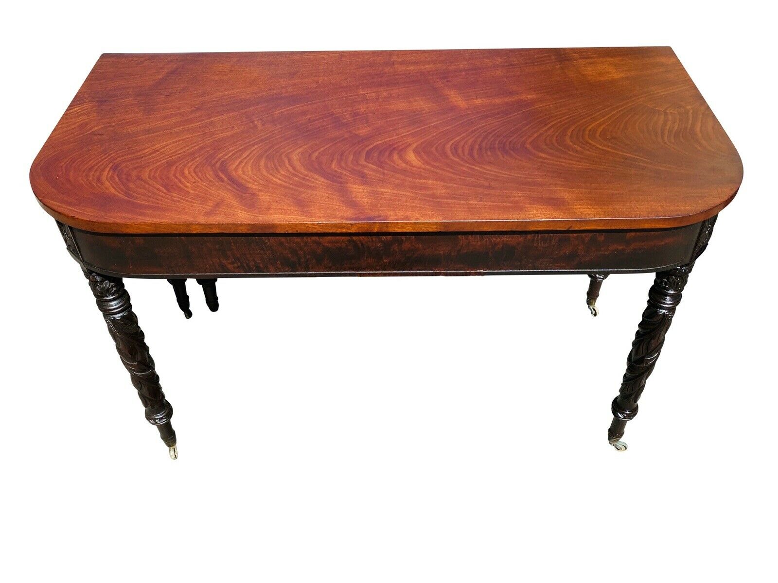 With our highest compliments we're extremely proud to offer for sale this stunning early 19th century antique Sheraton mahogany drop leaf dining table. Those who follow us understand the time, dedication & passion we invest into our practice. We continually scour the country in pursuit of top tier investment grade antiques for our discerning clients. We're always in the market for these and are ecstatic to bring this period New England table to market. This table is crafted from the absolute best grades of imported Caribbean mahogany. Examining the proportions, style, grade of lumber, top tier carving work, and a multitude of other factors we feel confident in saying this is a Salem, MA / north shore table. The table features magnificent single board tops & single board leafs. These cuts of mahogany represent the absolute best grade of imported timber and wouldn't be available outside of a major trade city like Salem, Boston, or Philadelphia. The table is in it's original surface finished in a beautiful red mahogany finish. If you attempted to have this table commissioned today it would be impossible, the wood doesn't exist anymore. Caribbean mahogany is the best in the world with special oil densities & mineral deposits that give it it's signature sheen. Caribbean mahogany was immensely popular in 18th & 19th century cabinet making and was farmed to near extinction levels. This dining table has masterfully carved acanthus formed legs with carved patterae designs along the apron. Each end of the dining table measures 48" wide x 24 1/2" deep x 29" tall when closed. When the leaves are extended and the table is completely set up it measures 48" wide x 95 3/4" long x 29" tall.