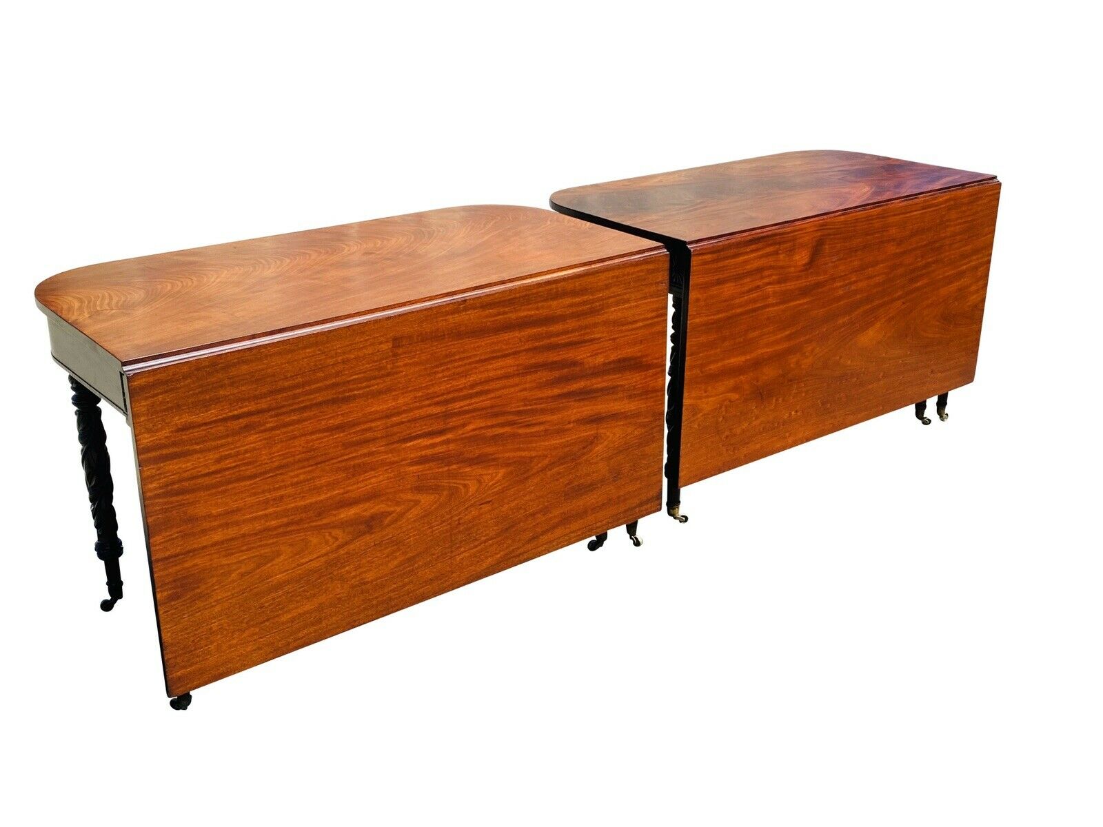 19TH CENTURY ANTIQUE SHERATON PERIOD DROP LEAF MAHOGANY DINING / BANQUET TABLE