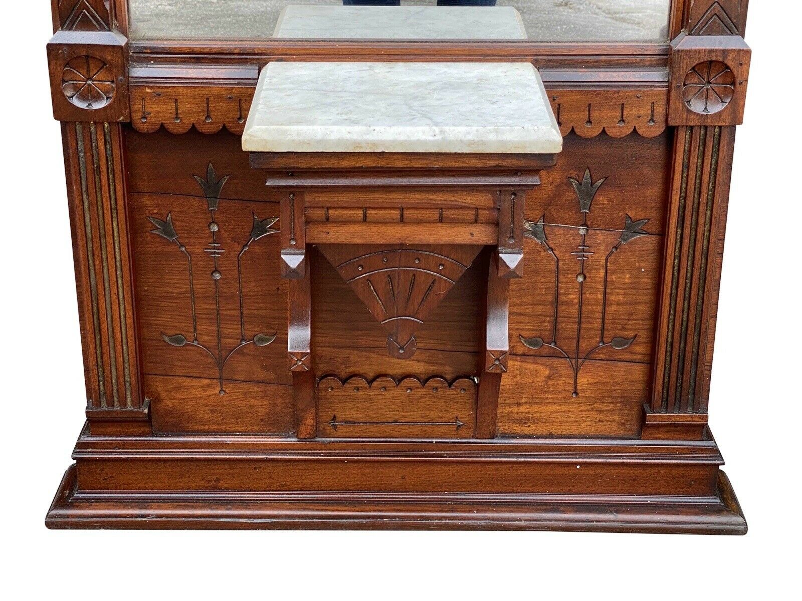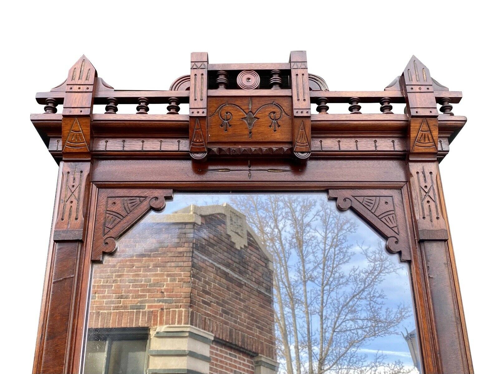 19th C Antique Large Victorian Walnut Pier Mirror / Hall Tree --- 8' 4" Tall