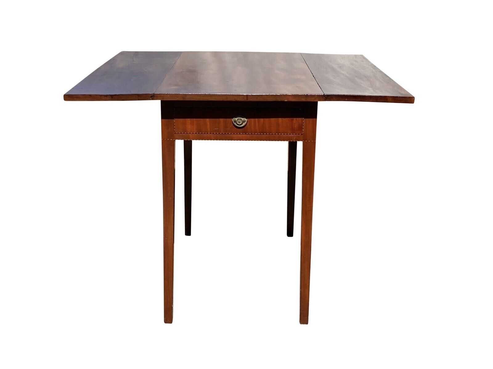 Antique Mahogany Federal Period Drop Leaf Table With Inlay & One Drawer