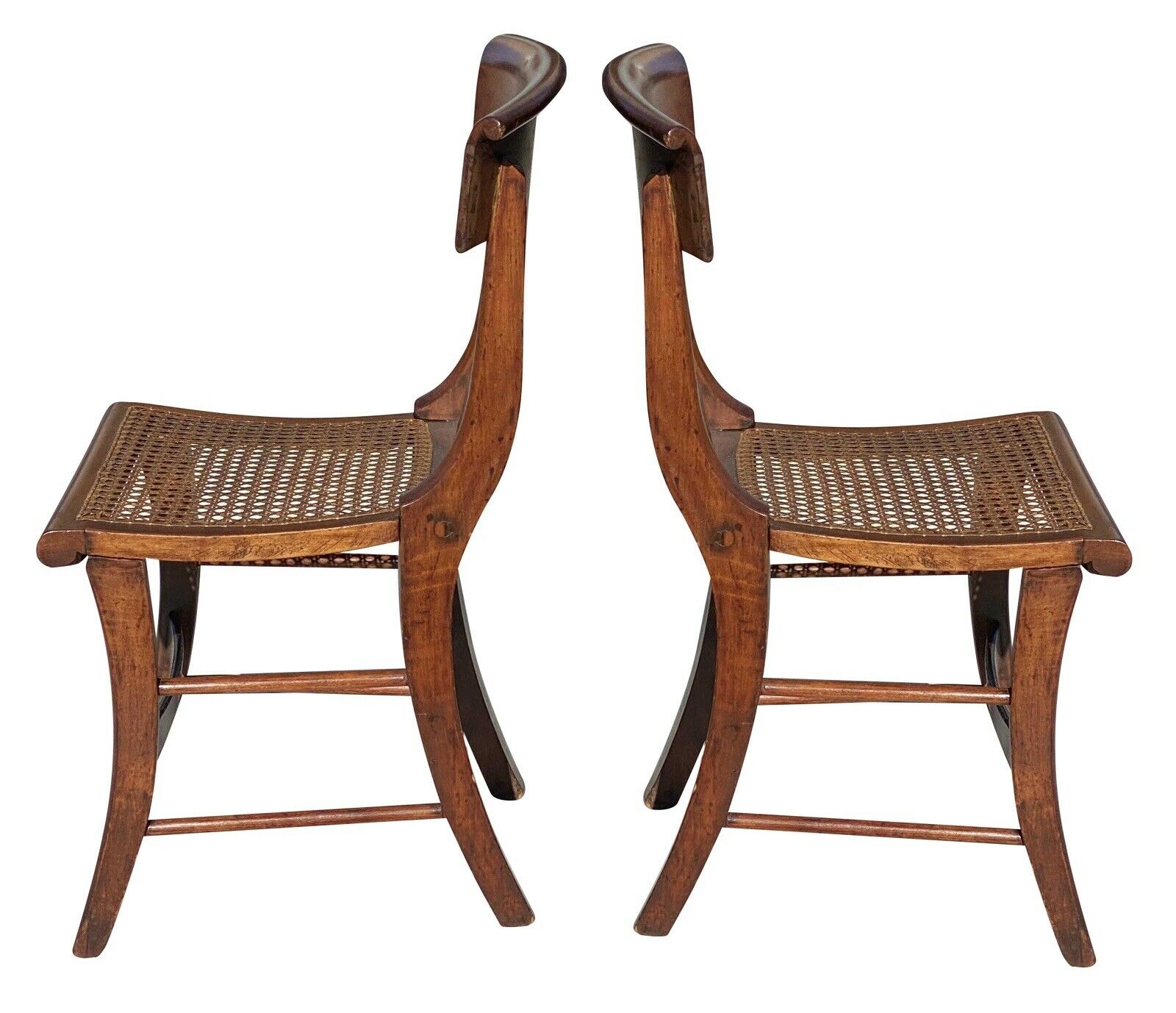 19th C Antique Pair of Tiger Maple & Birds Eye Maple Sabre Leg Dining Chairs