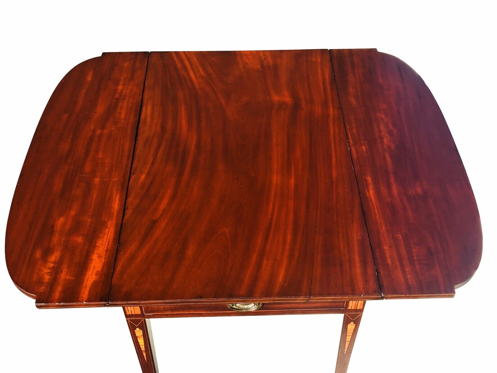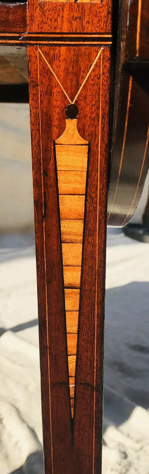 EARLY 19TH CENTURY ANTIQUE MAHOGANY HEPPLEWHITE ICICLE INLAY DROP LEAF TABLE BY PELATIAH BLISS OF SPRINGFIELD MA