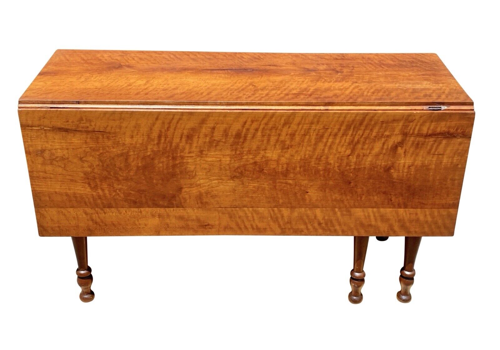 19th C Antique Sheraton Figured Cherry Drop Leaf Dining Table - 52" Long