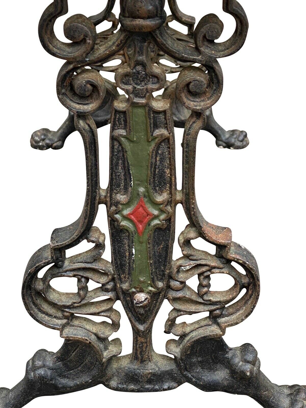| Bay Colony Antiques is delighted to offer for sale this fantastic 19th century antique Victorian cast iron vanity bench. The bench has a red velvet seat with some light staining that would be exceptionally easy to have done over. The base has crisp castings with lion paw feet and painted red and green accents. The bench measures 24” wide x 12” deep x 18” tall. The base measures 19 1/2” wide x 10 1/2” deep.