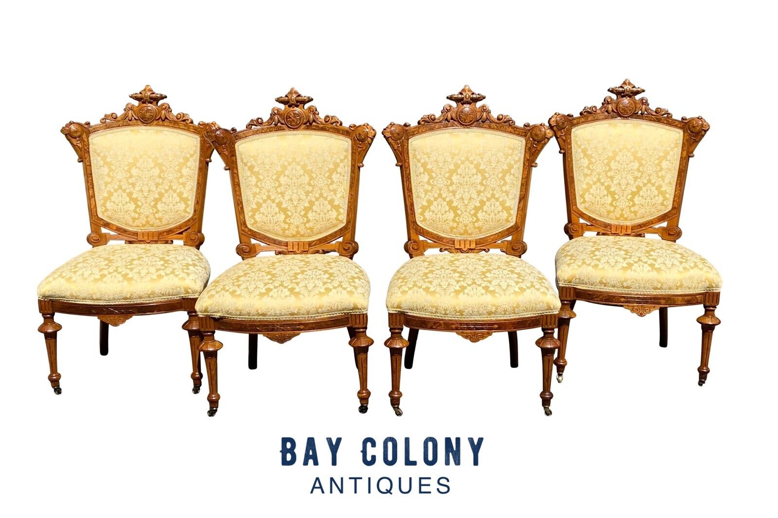 19th C Set of 4 Antique New York Victorian Renaissance Revival Parlor Chairs