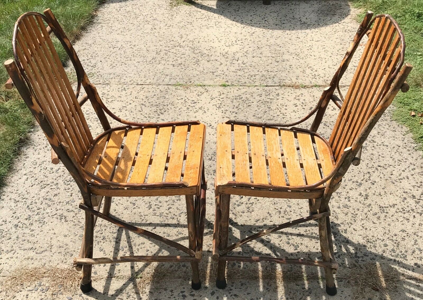 20TH C ADIRONDACK LIVE WOOD TABLE W. FIVE NATURAL BENTWOOD CHAIRS - PATIO SET