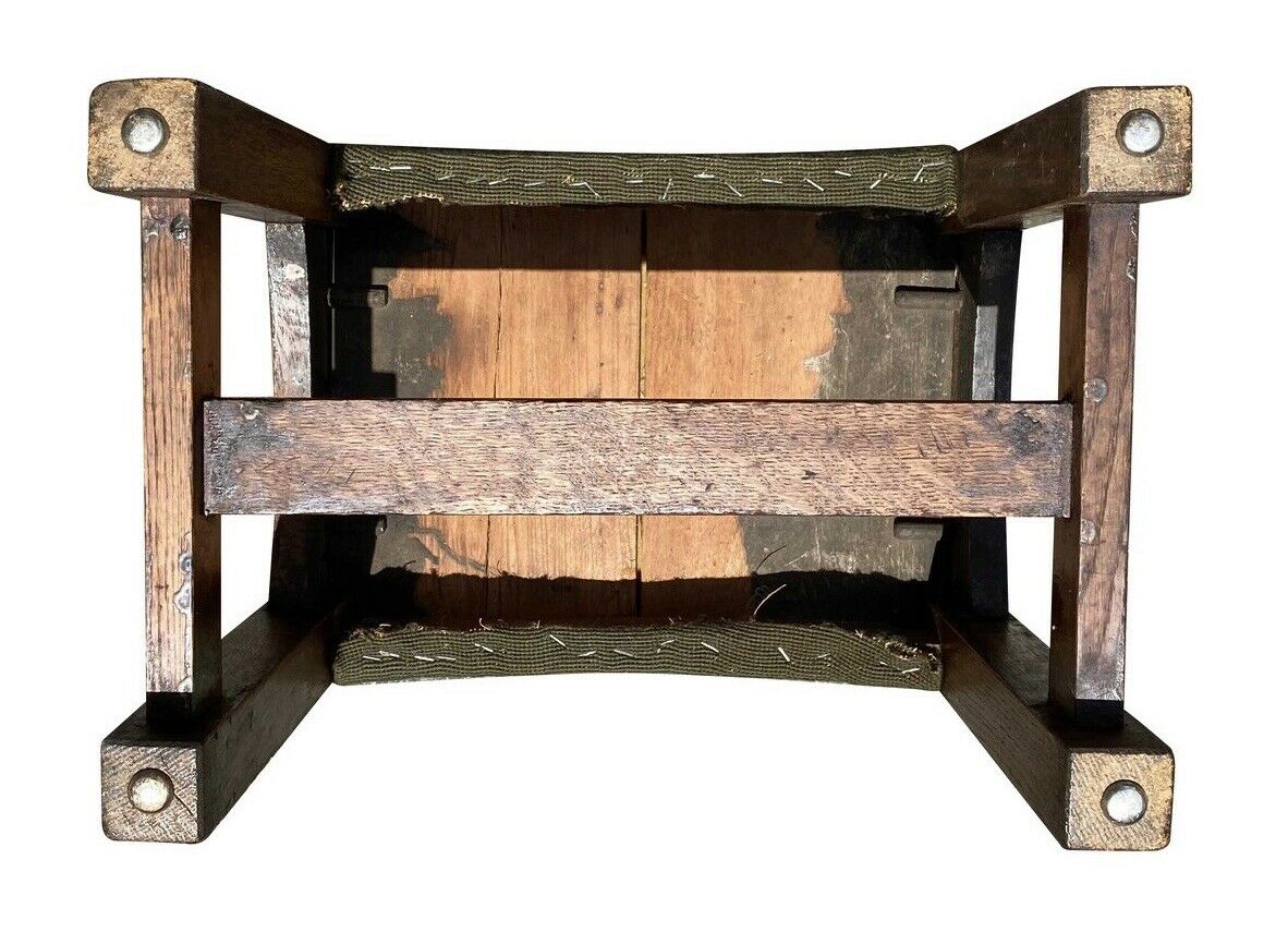 20TH C ANTIQUE ARTS & CRAFTS / MISSION OAK NEEDLEPOINT SEAT FOOTSTOOL ~ STICKLEY