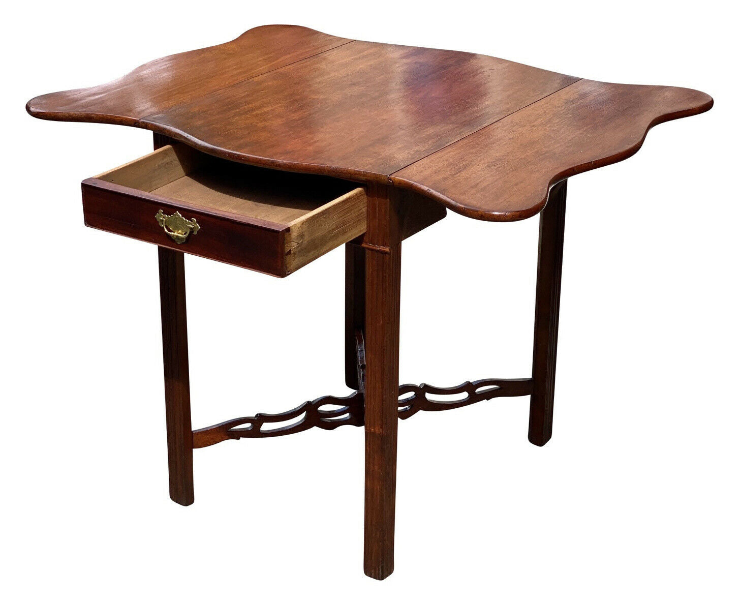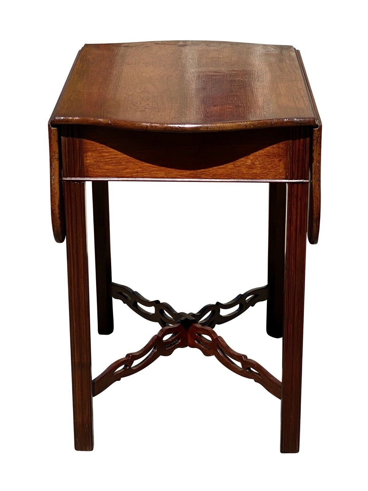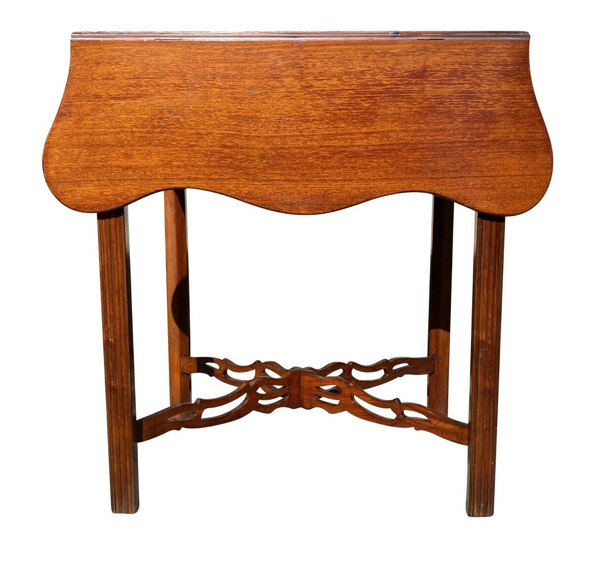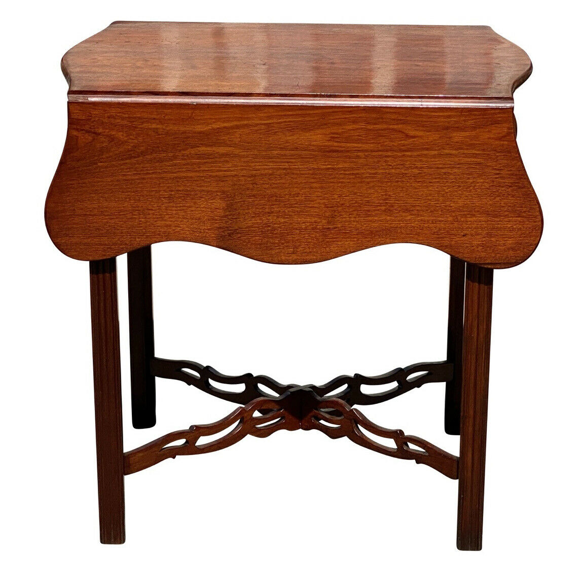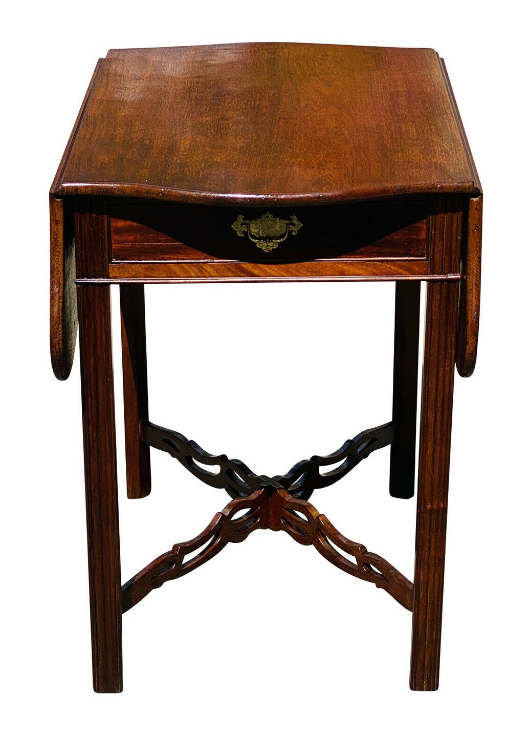 20TH C ANTIQUE CHIPPENDALE MAHOGANY DROP LEAF PEMBROKE TABLE W/ SERPENTINE TOP