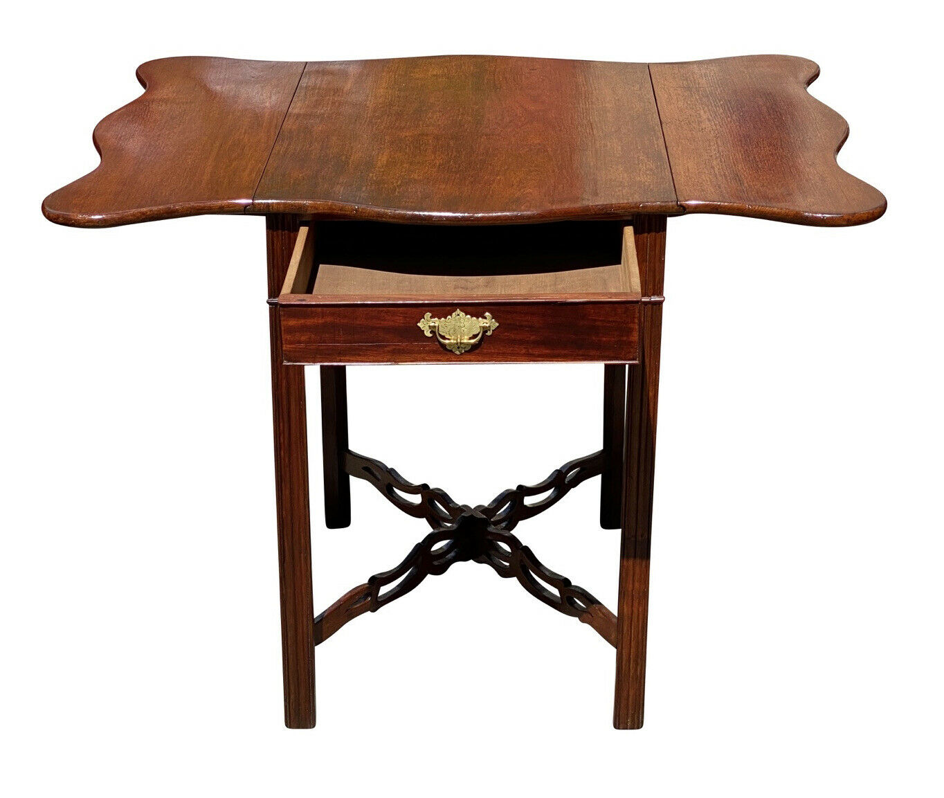 20TH CENTURY ANTIQUE CHIPPENDALE MAHOGANY PEMBROKE TABLE WITH SERPENTINE TOP