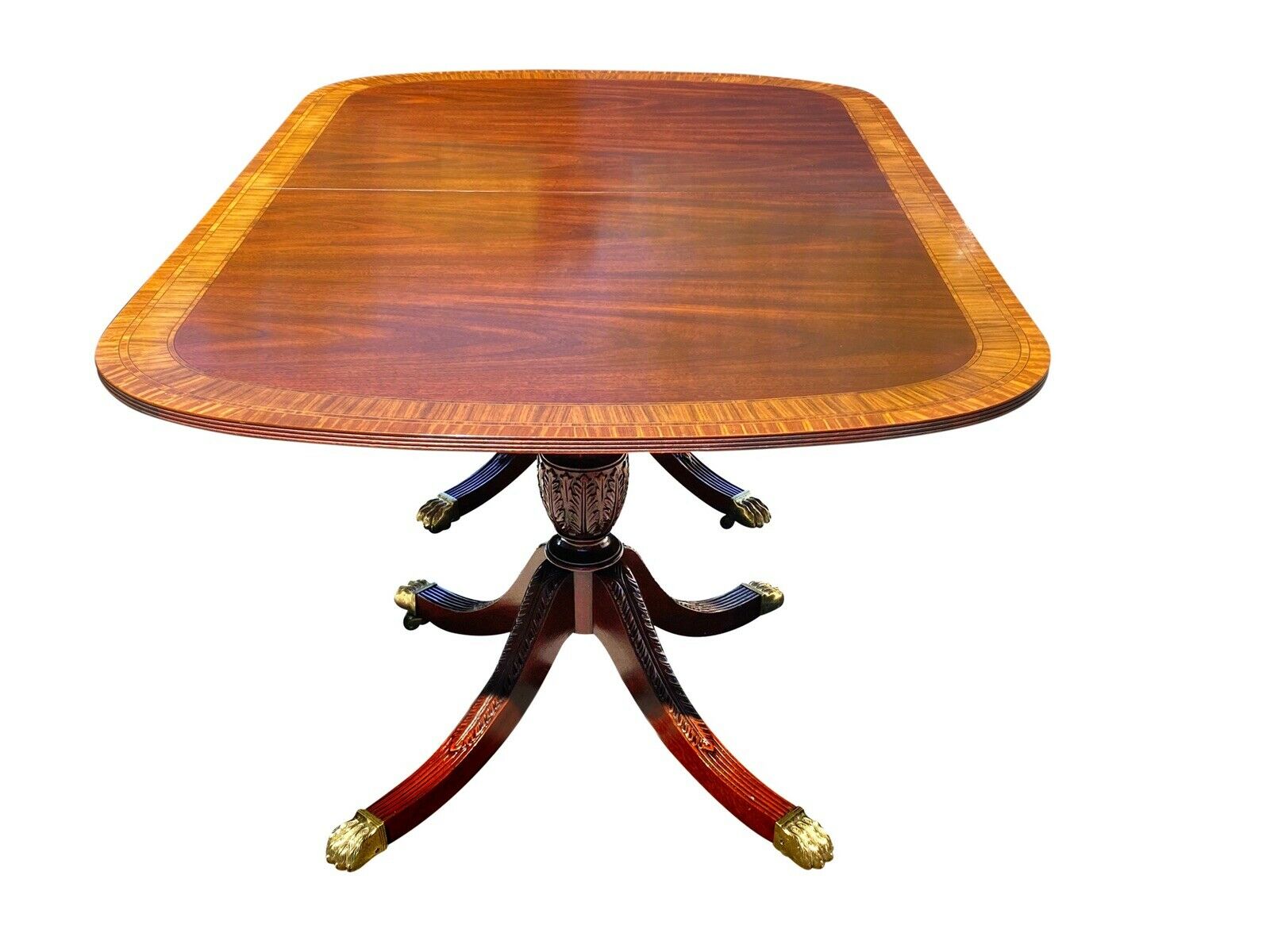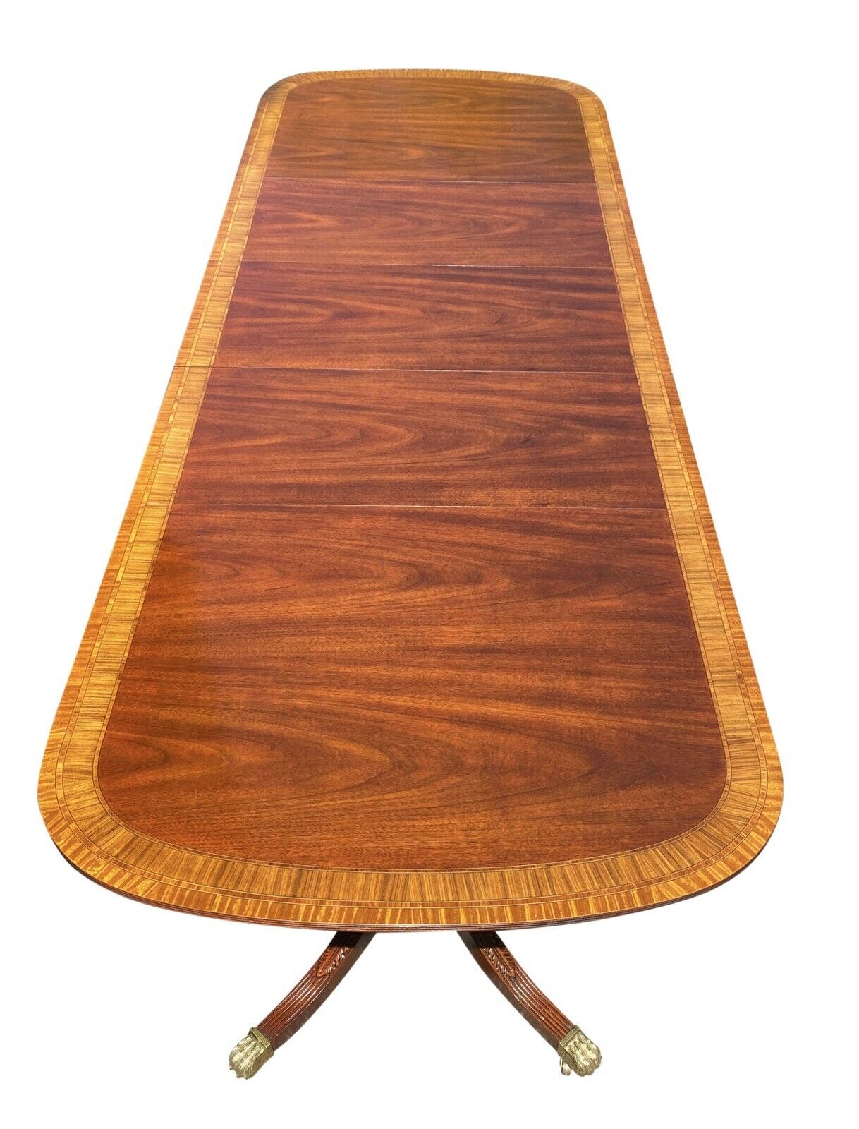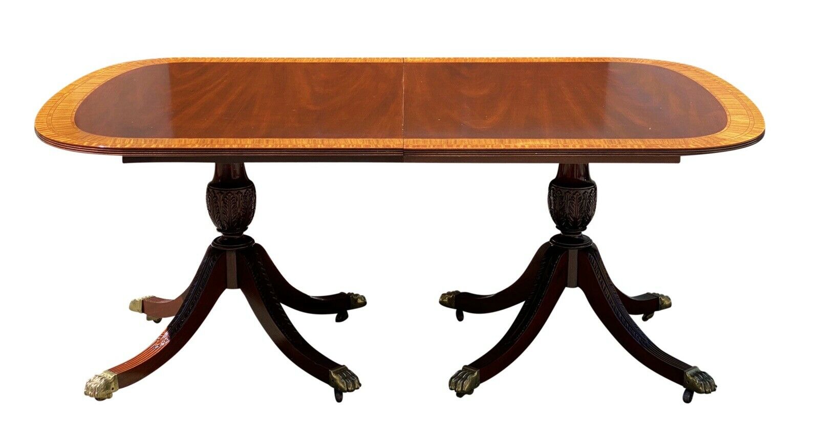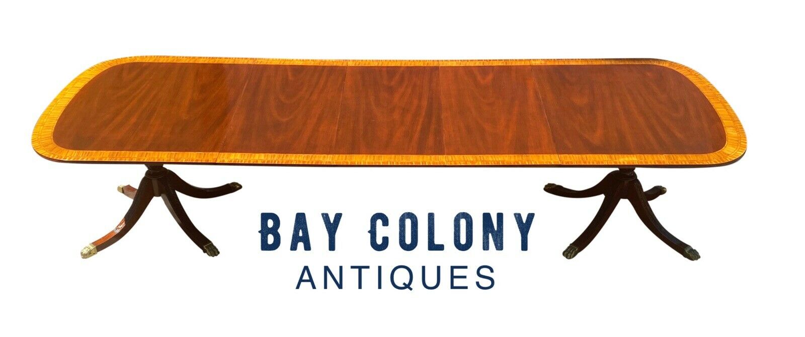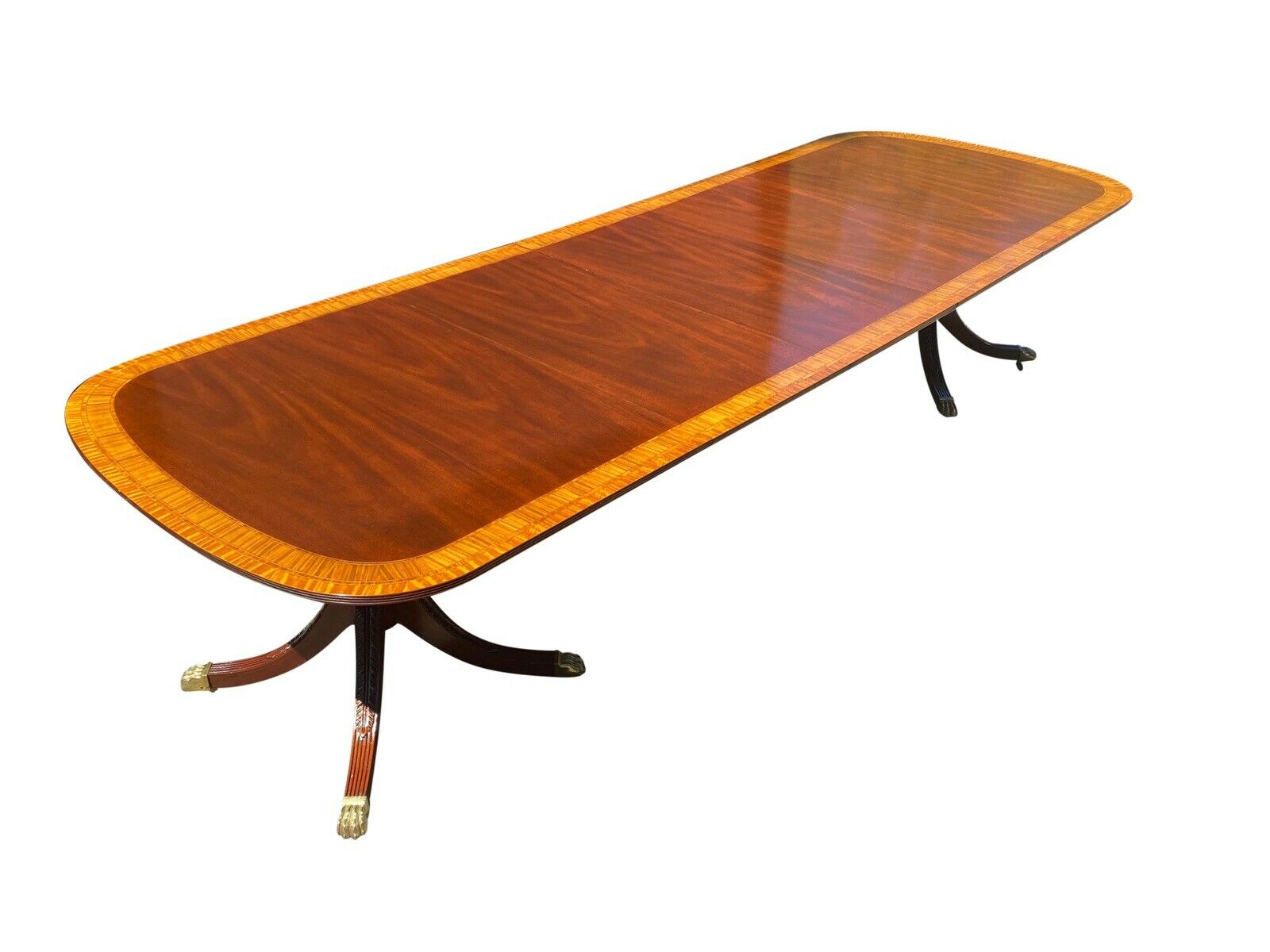 20TH CENTURY FEDERAL ANTIQUE STYLE MAHOGANY & SATINWOOD DOUBLE PEDESTAL DINING / BANQUET TABLE BY COUNCILL CRAFTSMEN