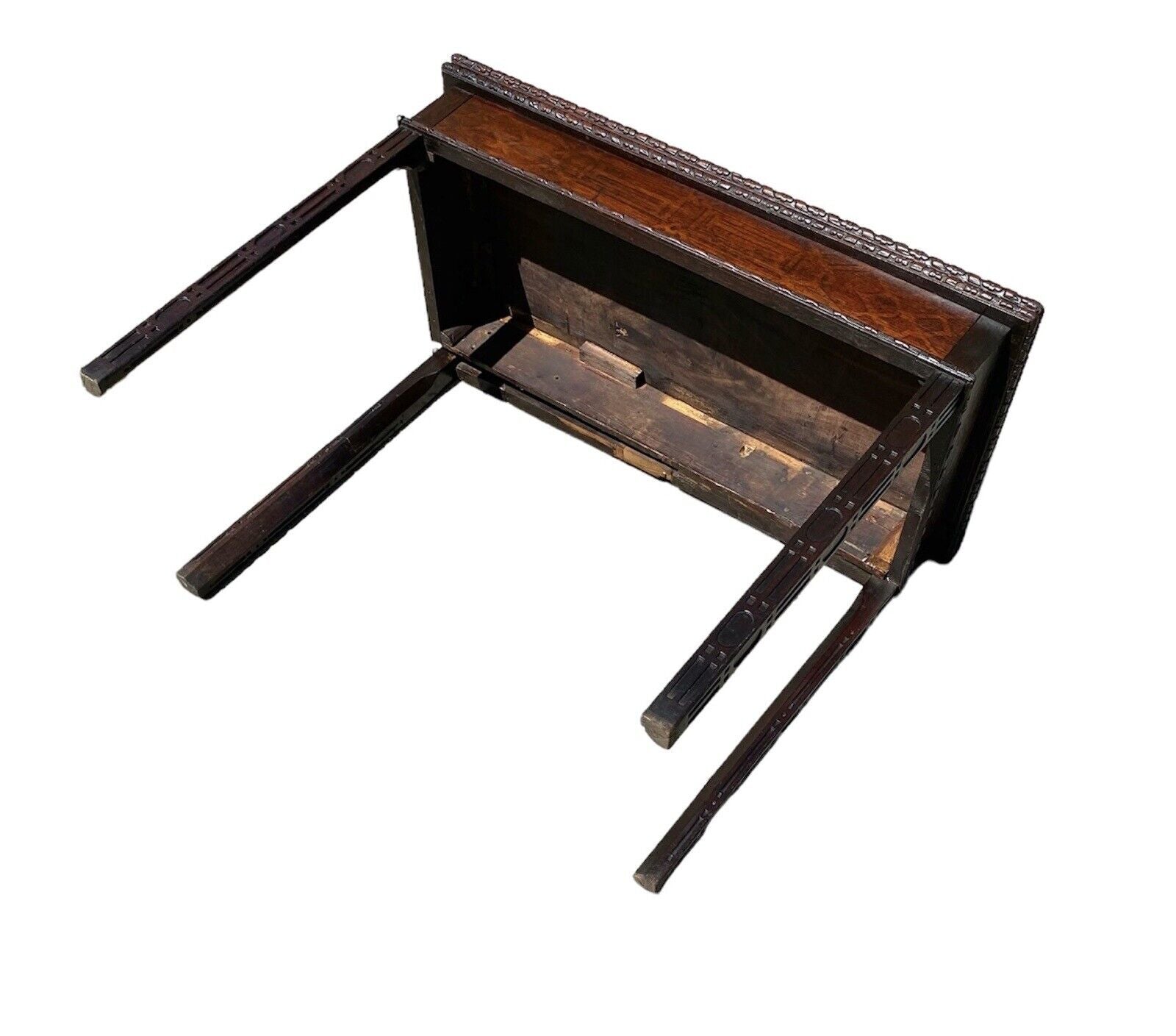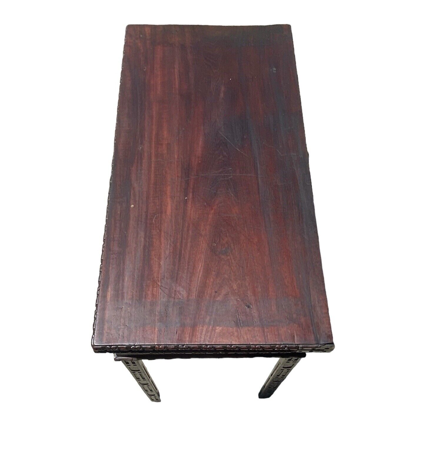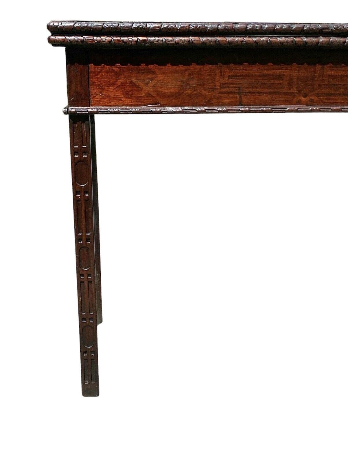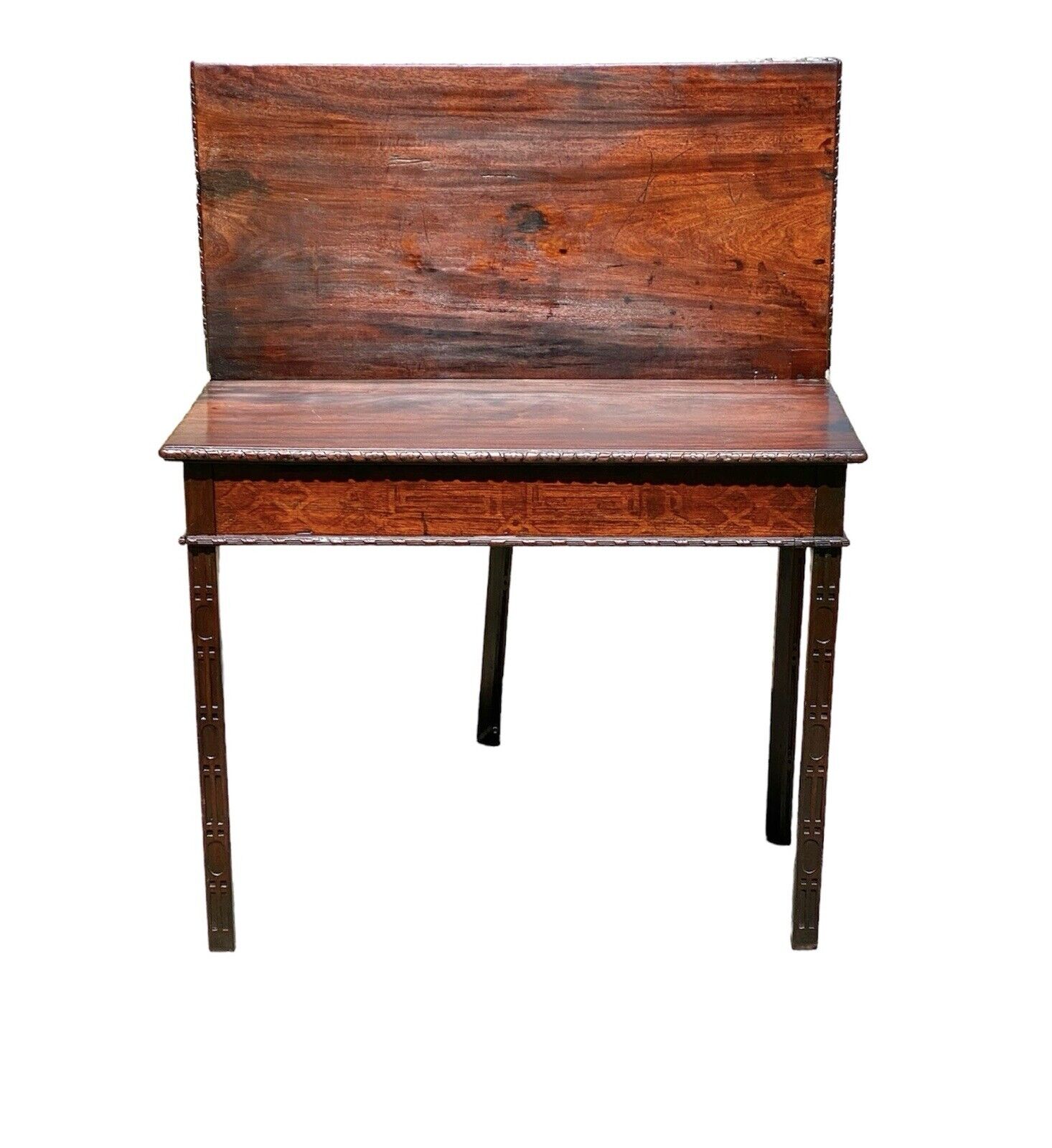 18TH CENTURY ANTIQUE CHINESE CHIPPENDALE MAHOGANY CARD TABLE WITH FOLIATE CARVED EDGE & COUNTER-RELIEF CARVED LEGS CA 1760