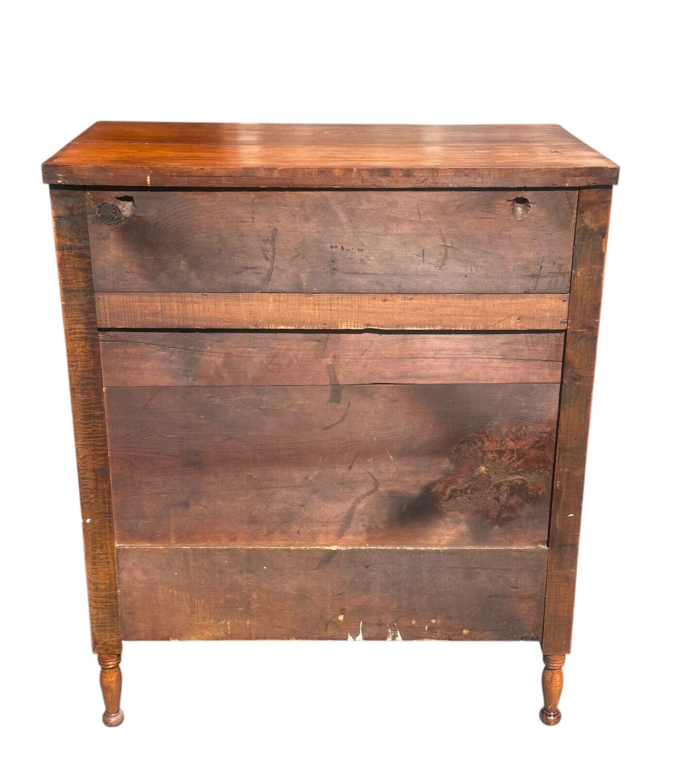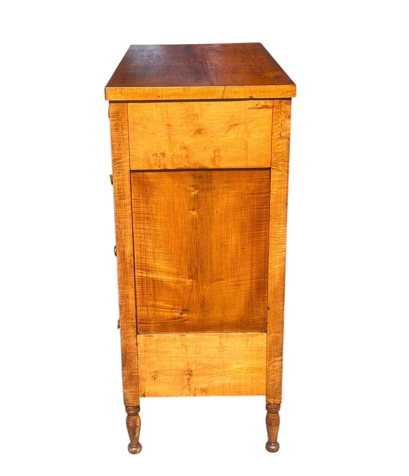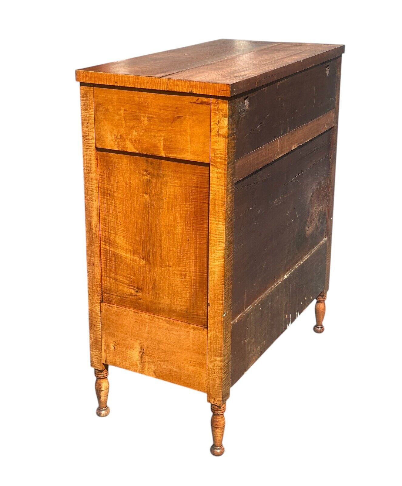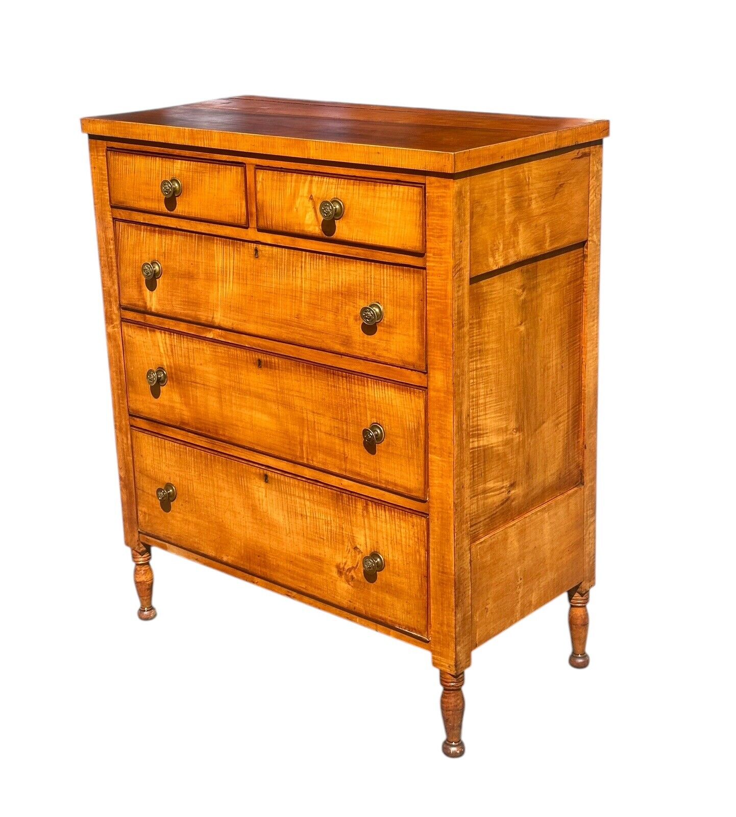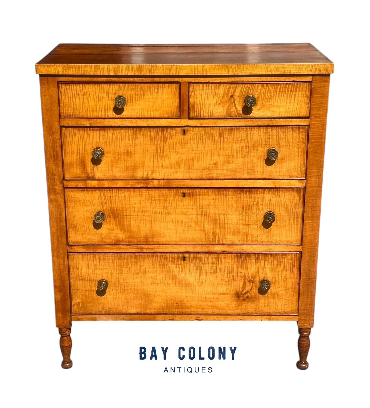 Antique Federal Period Tiger Maple Tall Chest With Secret Locking Drawer Feature