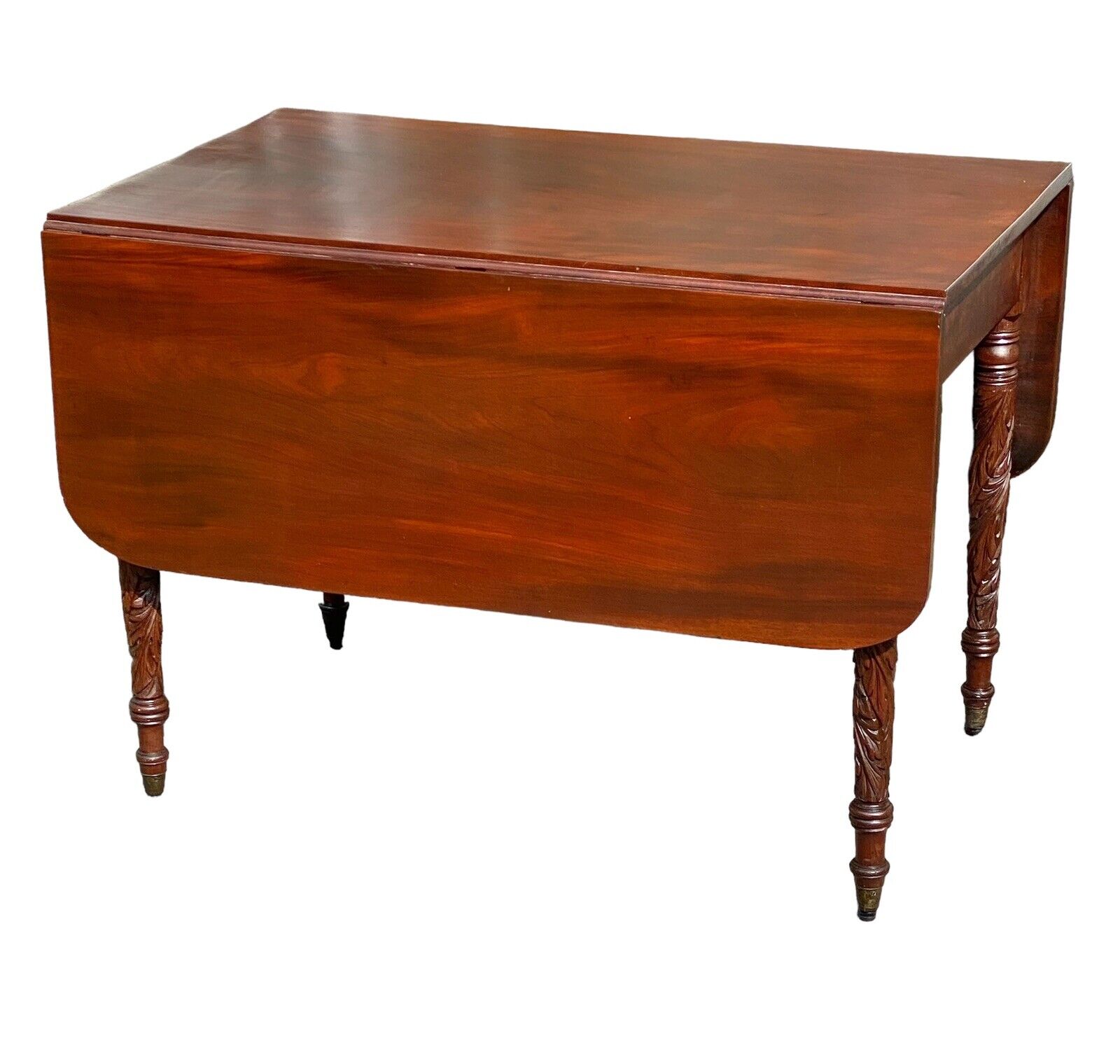 Antique Mahogany Drop Leaf Table with Acanthus Carved Legs - NYC CA 1810