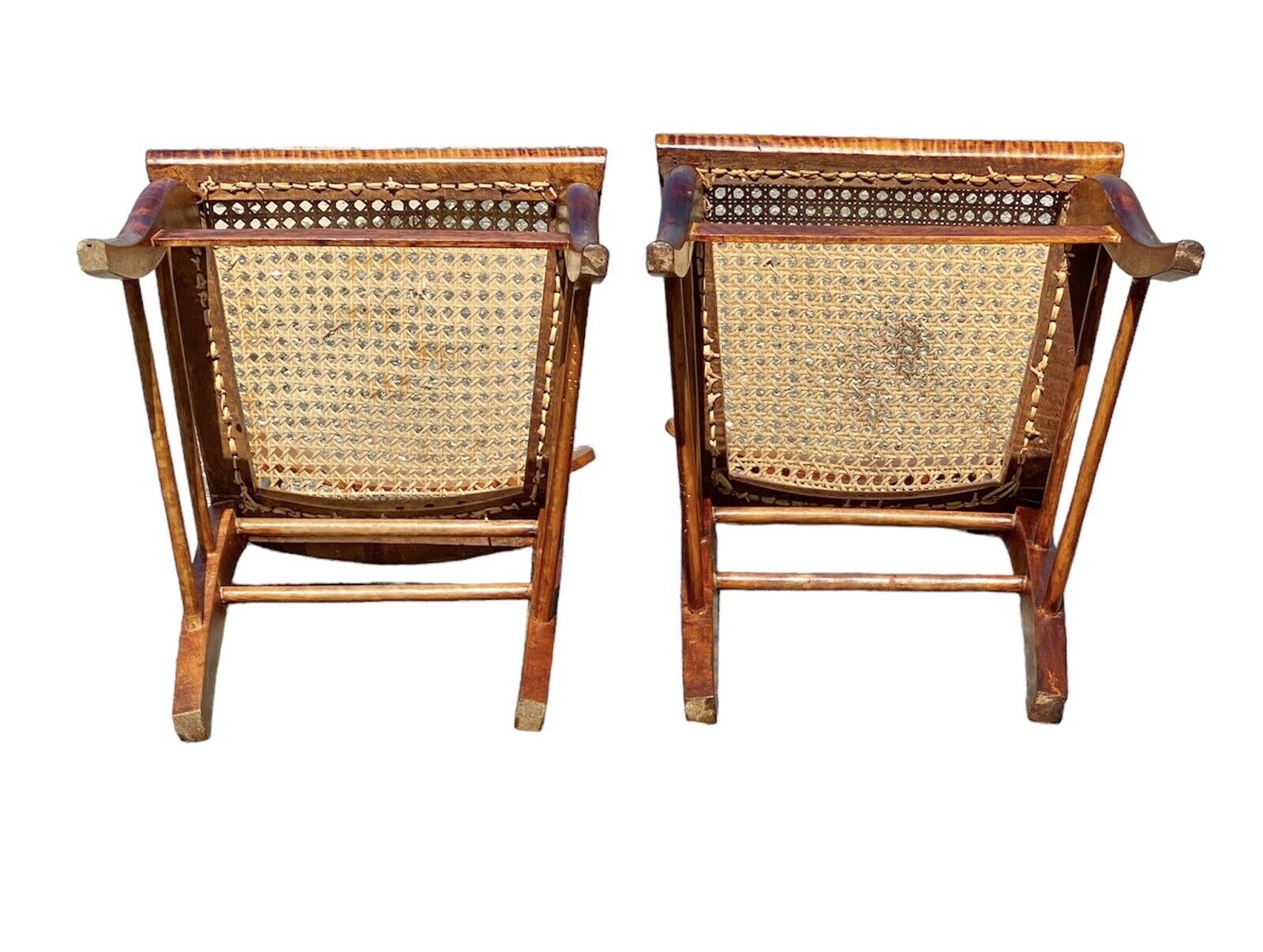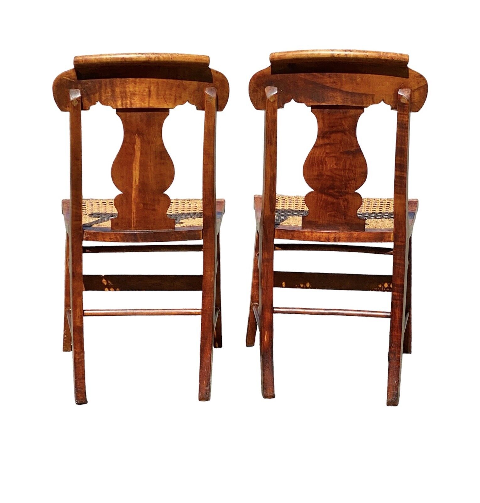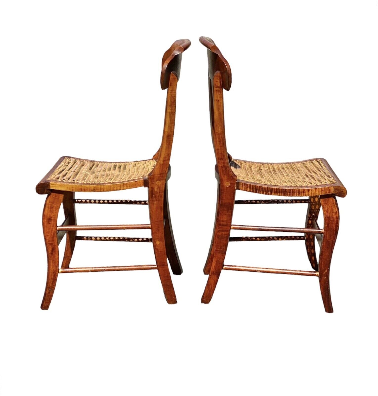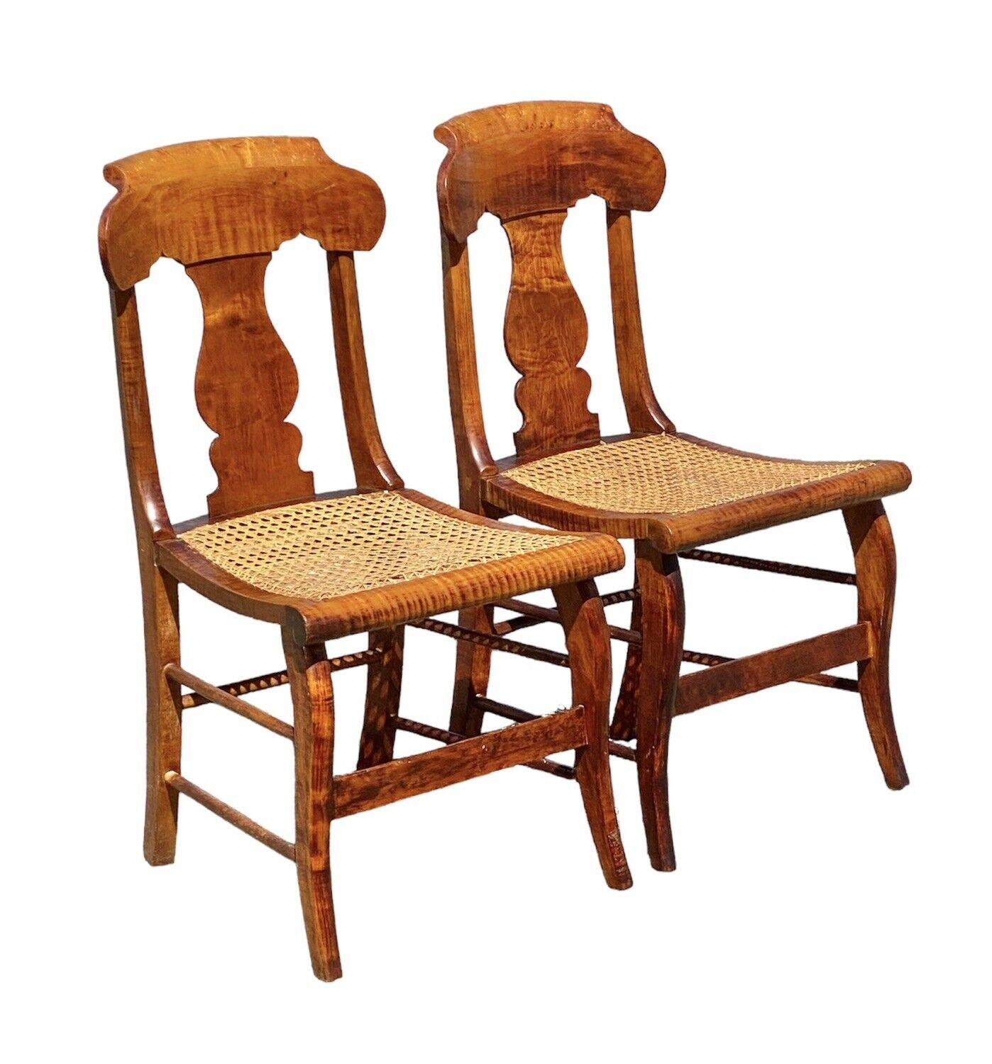 Antique Pair of Tiger Maple & Bird's Eye Maple Side Chairs with Cane Seats