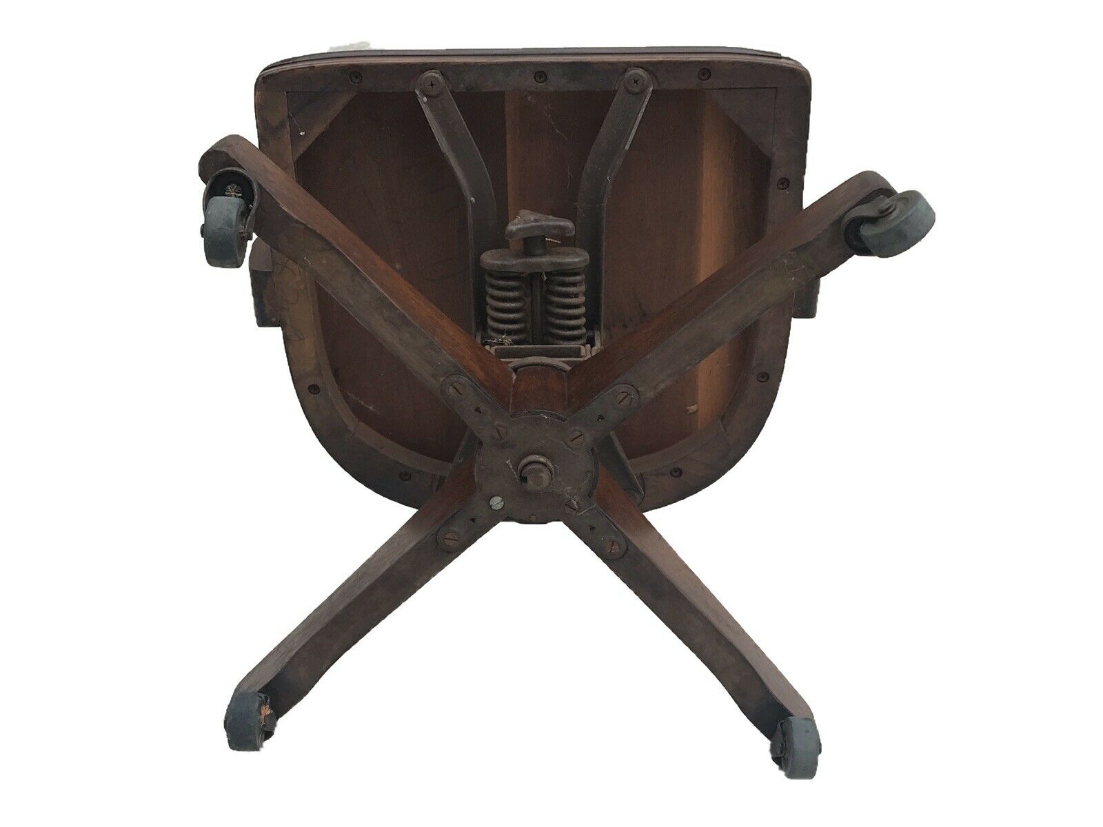 ANTIQUE WALNUT BANK OF ENGLAND OFFICE DESK SWIVEL ARM CHAIR BY TAYLOR CHAIR CO.