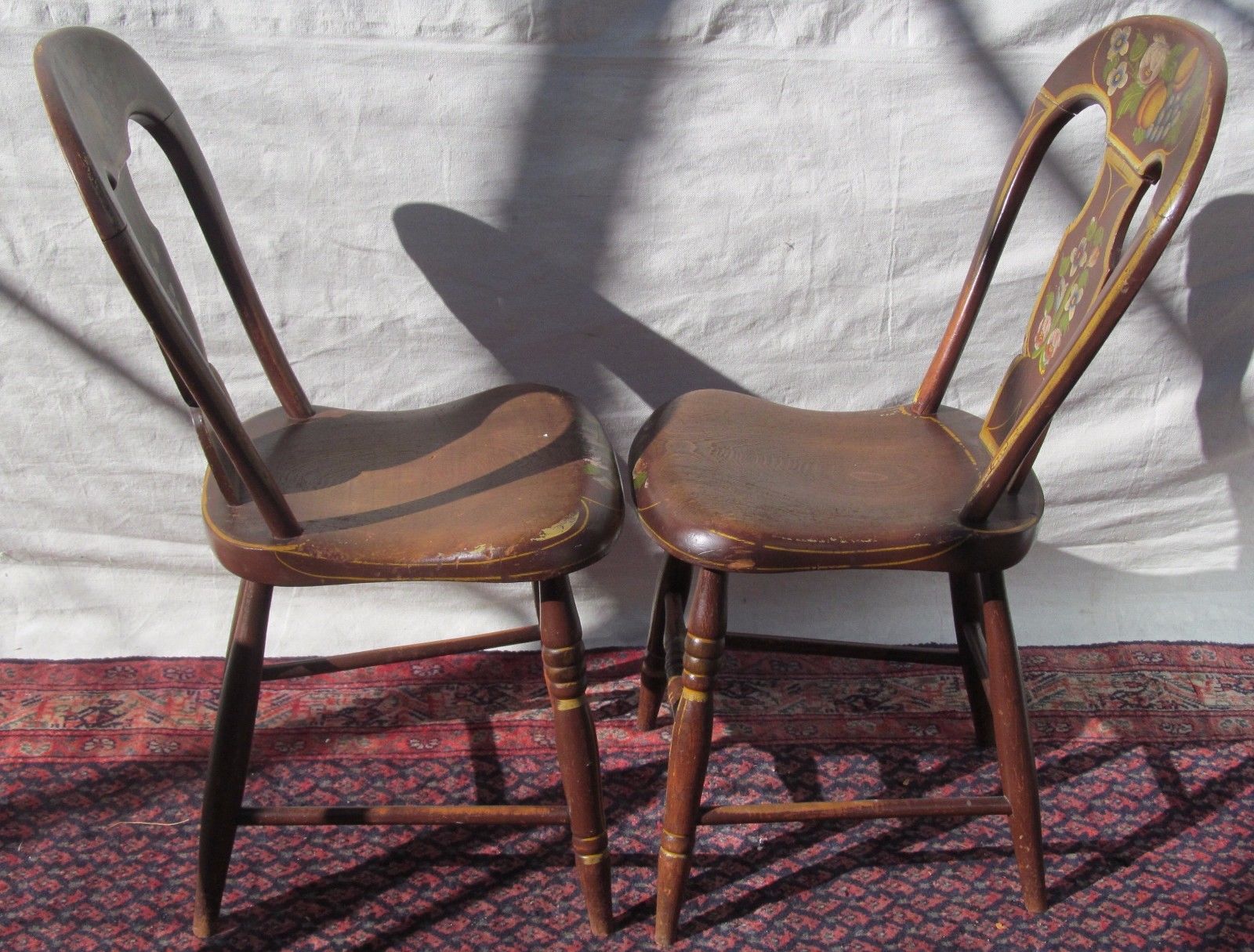 ANTIQUE WONDERFULLY PAINT DECORATED OHIO RIVER VALLEY SET OF FOUR CHAIRS