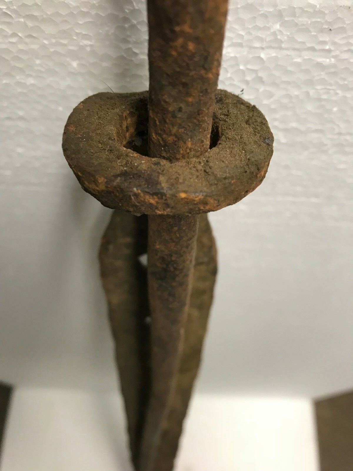 EARLY 19TH C CAST IRON & WROUGHT IRON ADJUSTABLE TRAMMEL