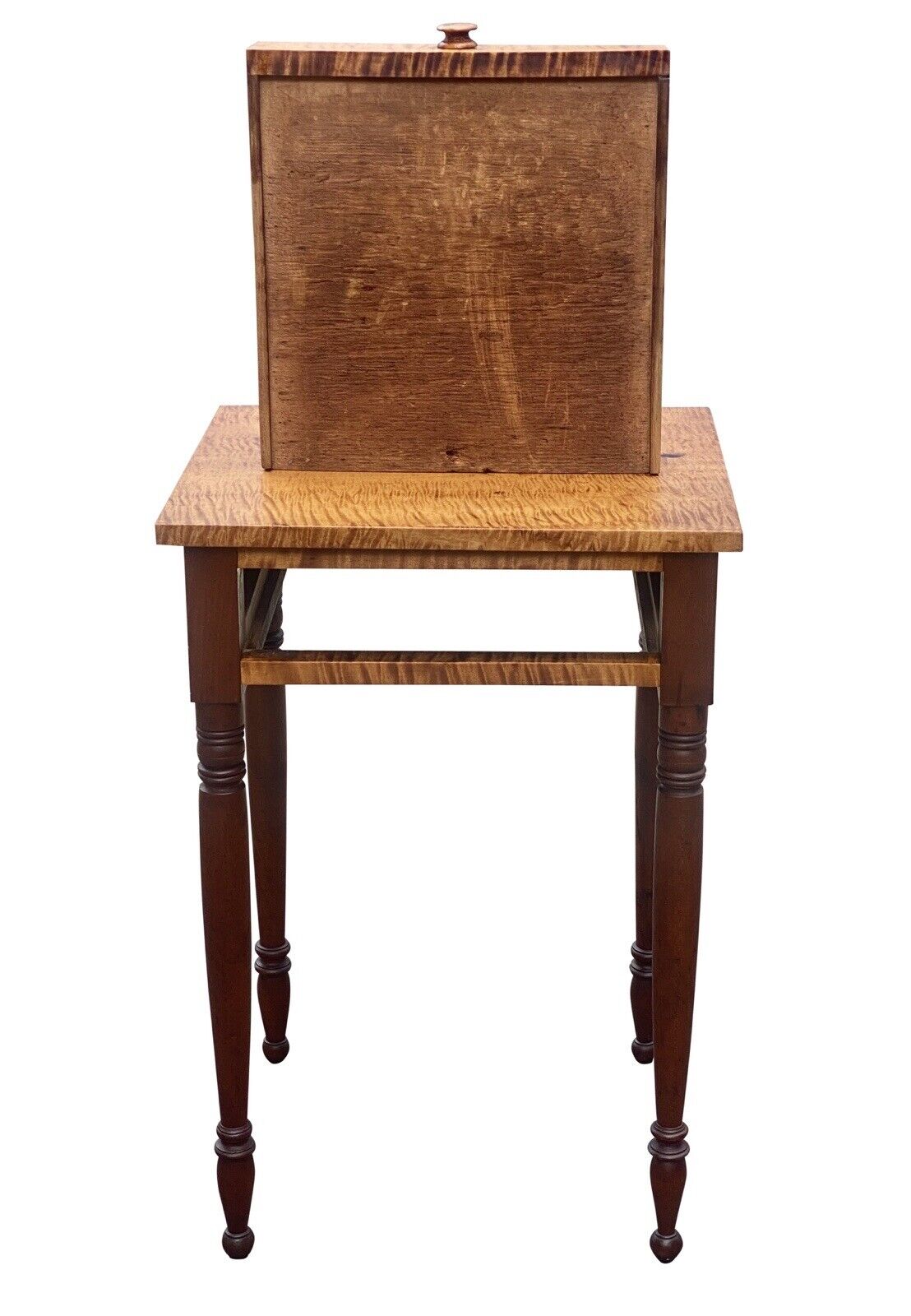 Early 19th Century Antique Federal Tiger Maple New England Work Table Nightstand
