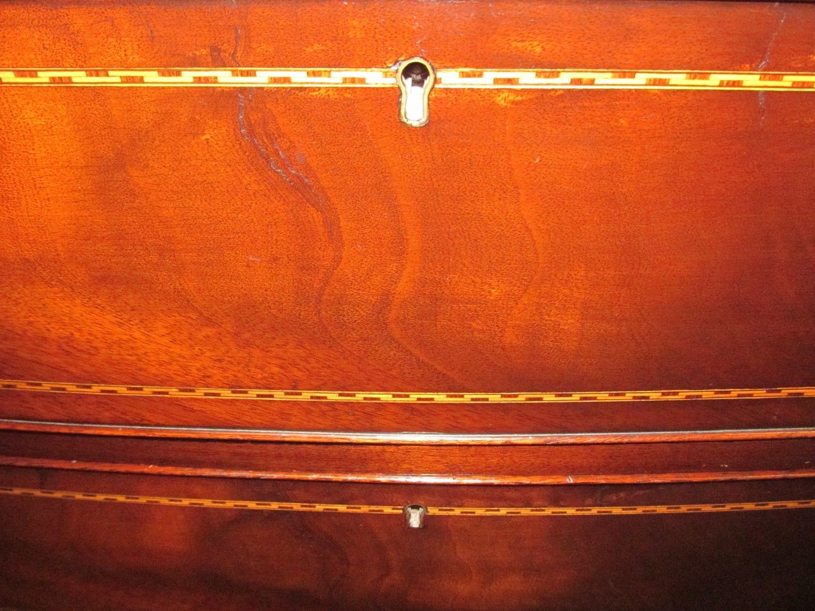 FEDERAL STYLE INLAID MAHOGANY BOW FRONT DRESSER WITH COOKIE CORNERED TOP