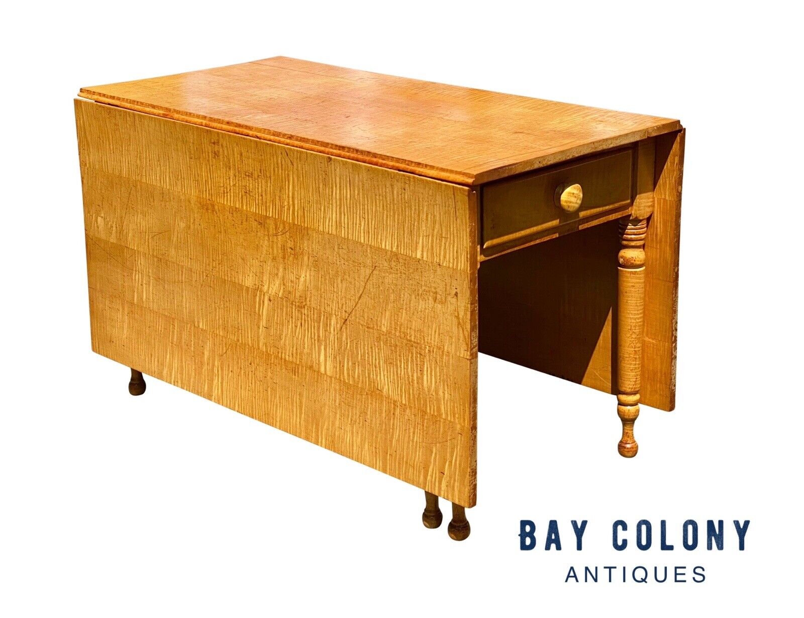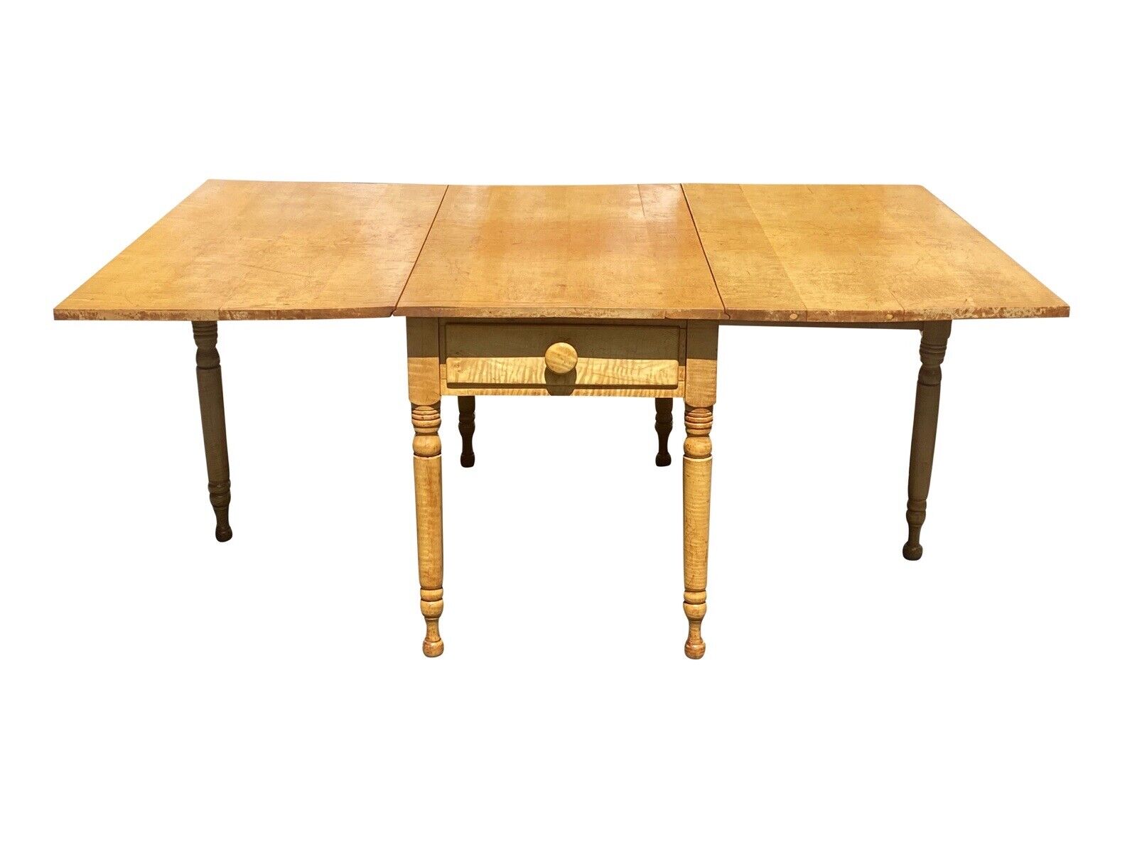 Federal Style Tiger Maple Gateleg Dining Table With Bold Grain and Large Drawer