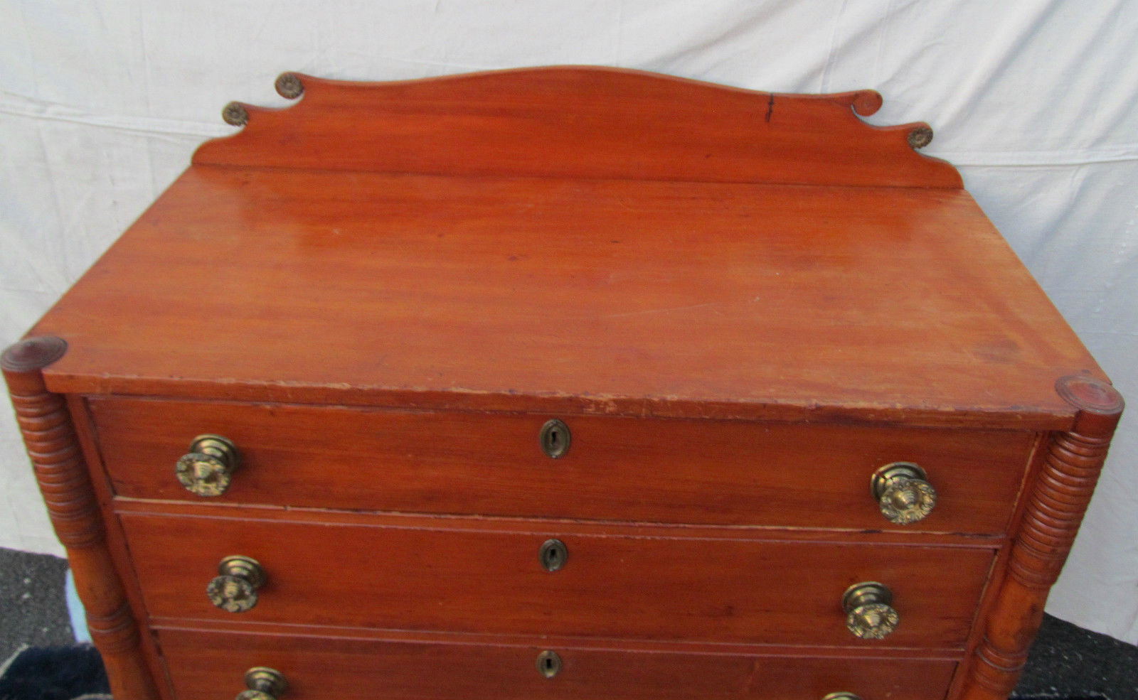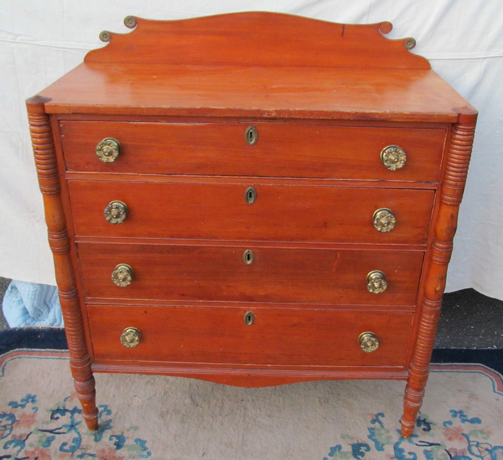 FINE 1790 SHERATON PINE & MAPLE DRESSER W/RING TURNED COLUMNS N.H. EXCEPTIONAL!