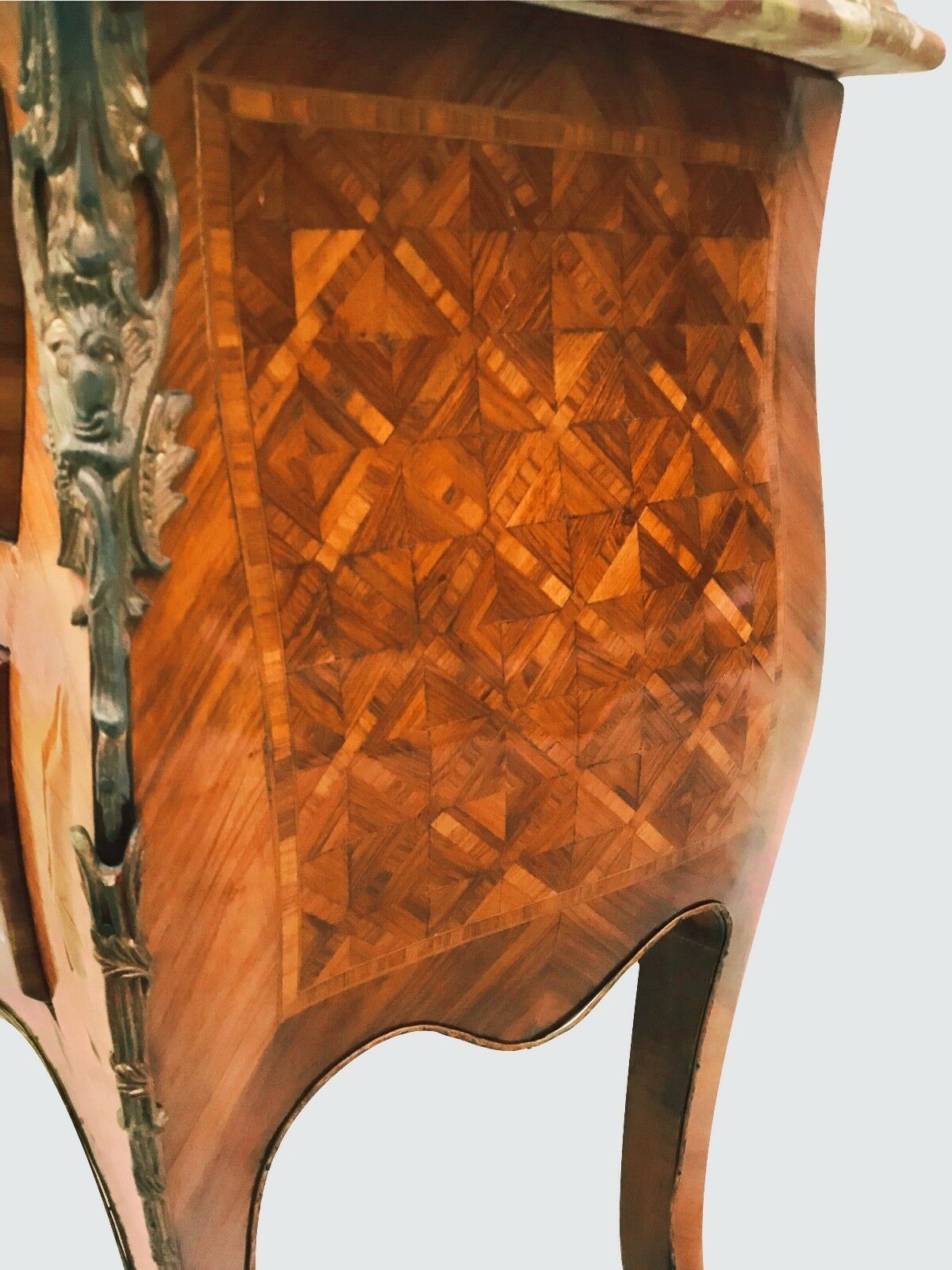 FINE FRENCH LOUIS XV STYLED BOMBE FORMED MARBLE TOPPED DRESSER CHEST CONSOLE