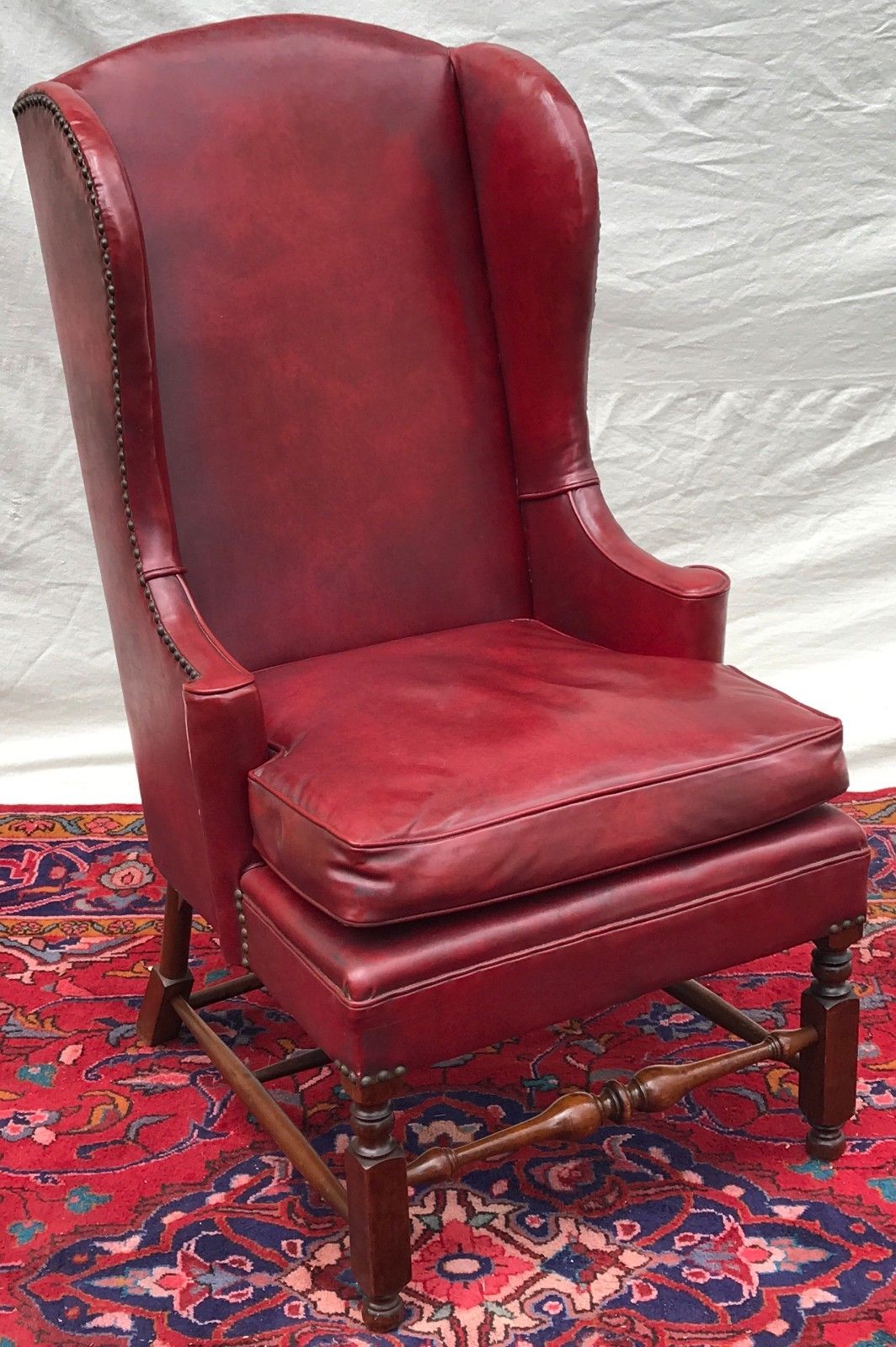 RED LEATHER WILLIAM & MARY STYLED WING CHAIR