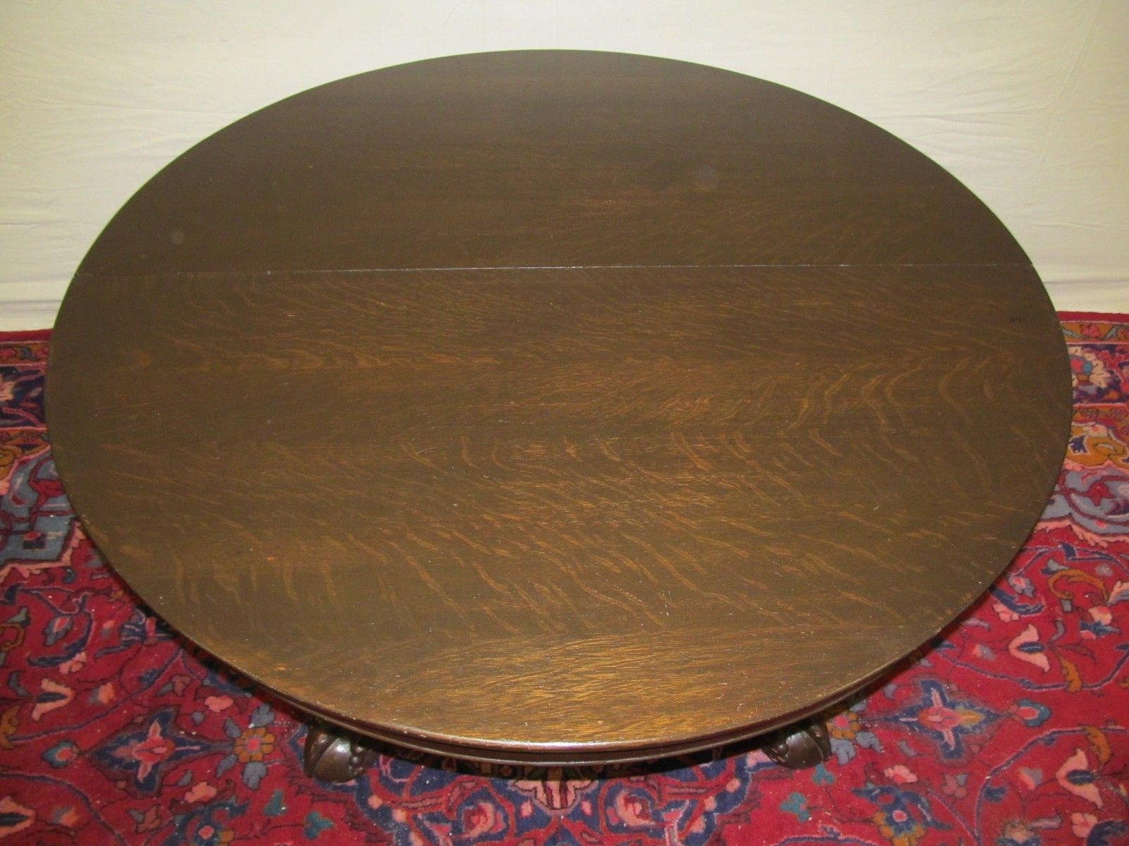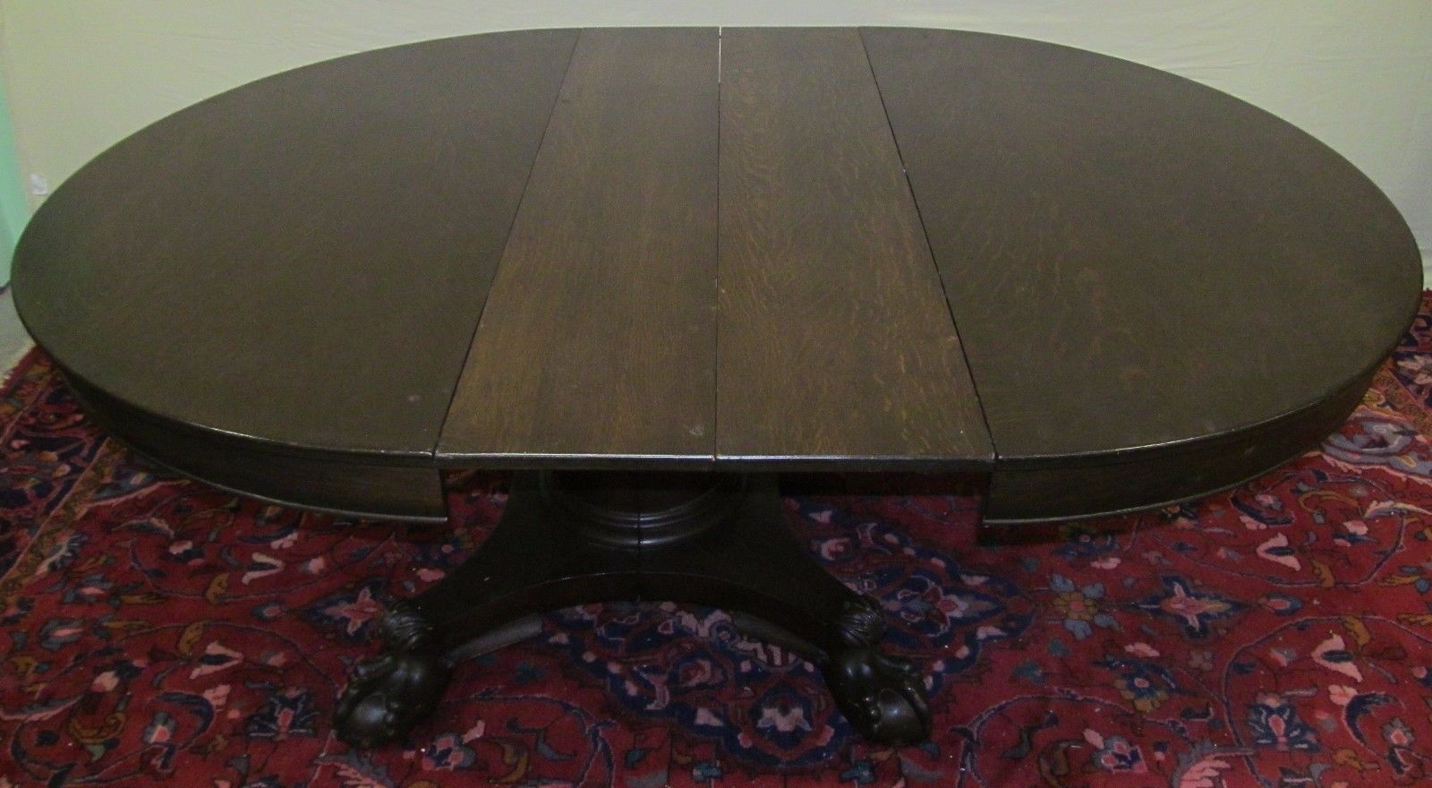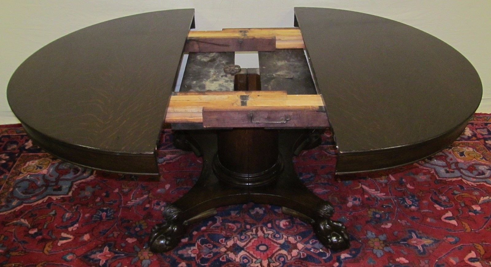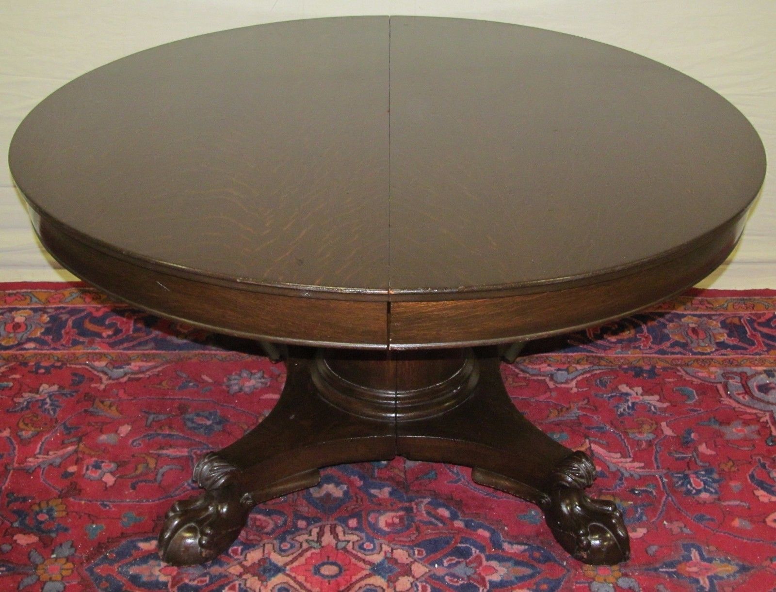 VICTORIAN SOLID TIGER OAK DINING TABLE ON PEDESTAL TALON LEG CARVED BASE